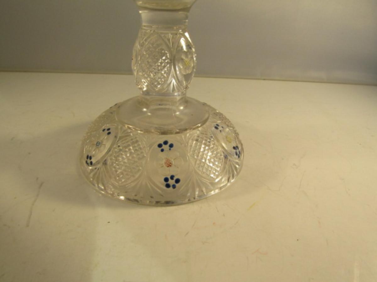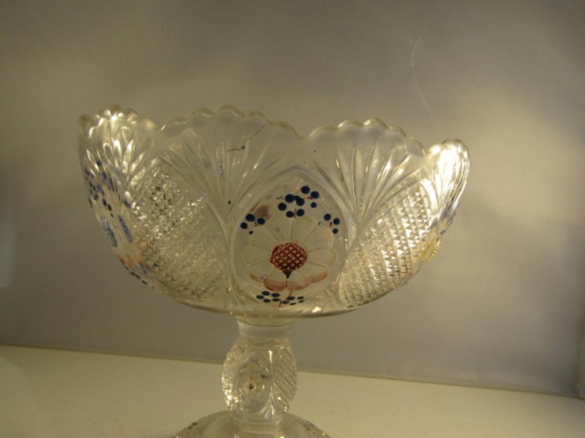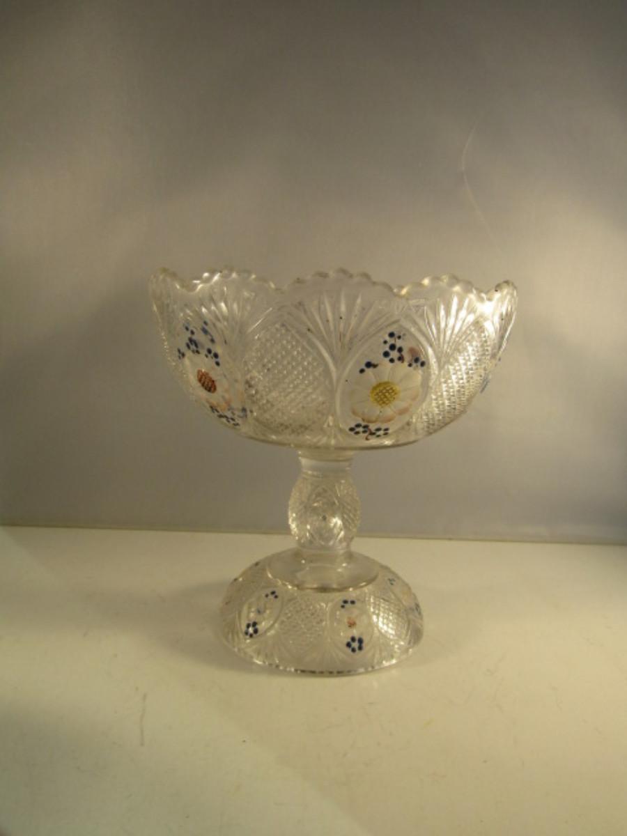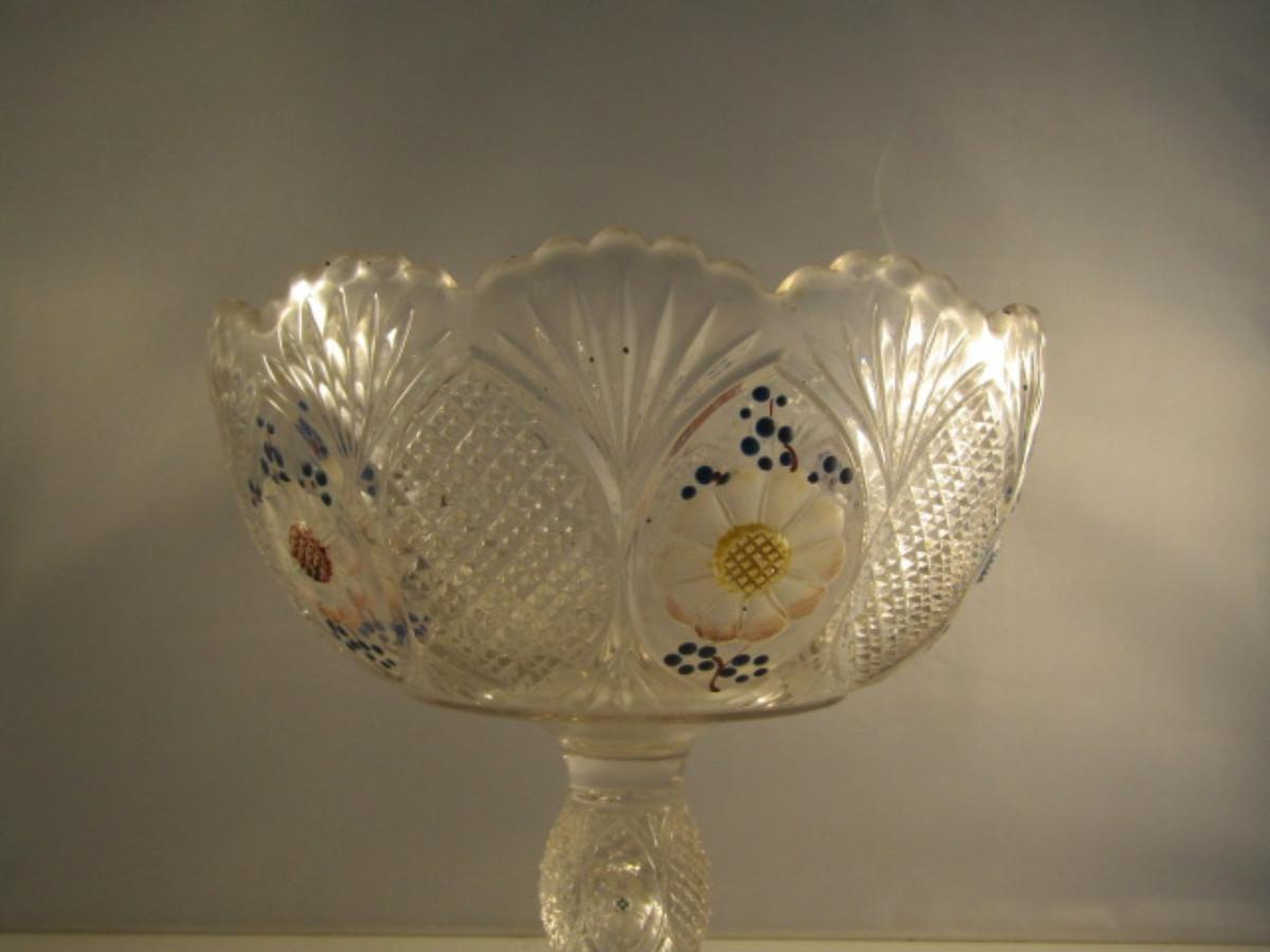 Vintage Glass Footed Compote Bowl with Scalloped Edge and Floral Accents- Approx 7 1/4" in Diameter