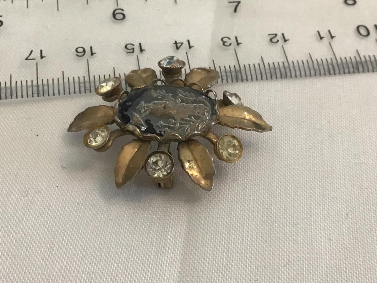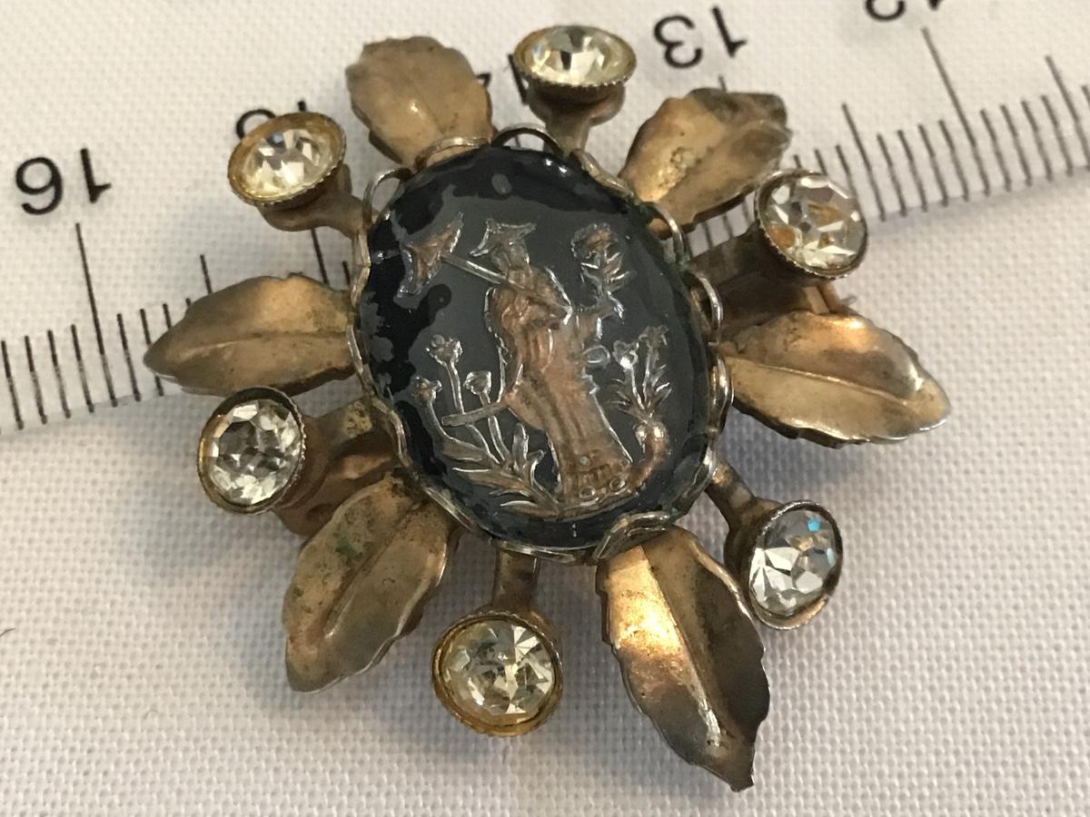 Vintage Glass Geisha Rhinestone Brooch
