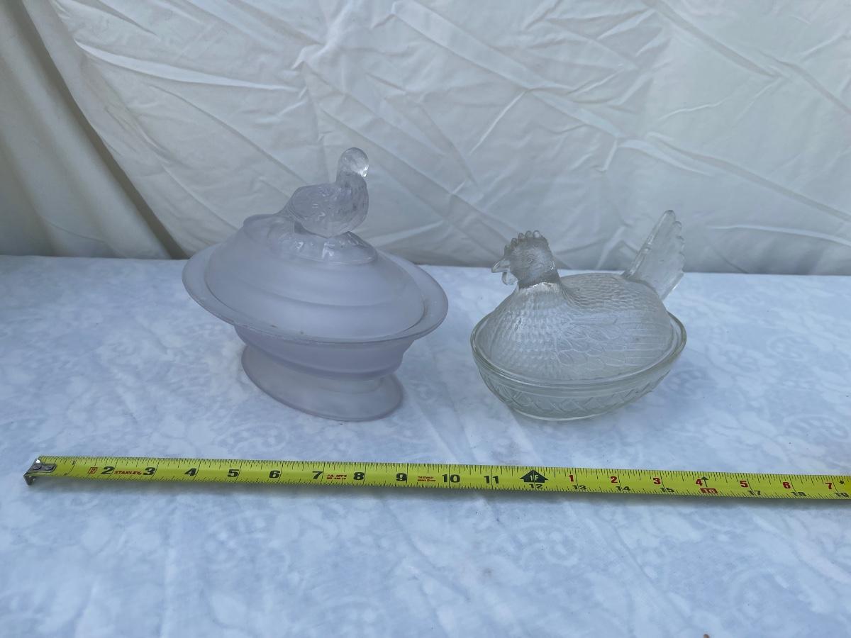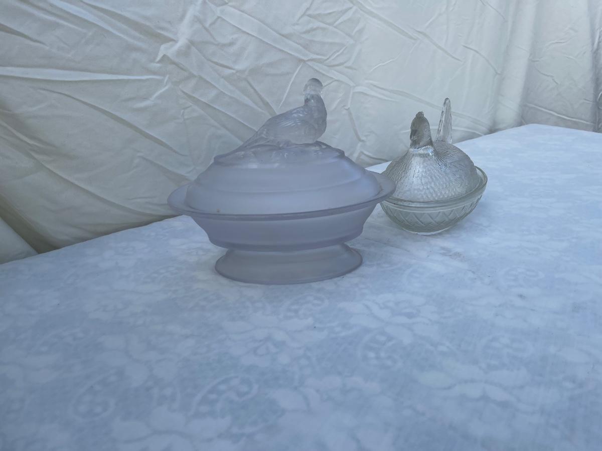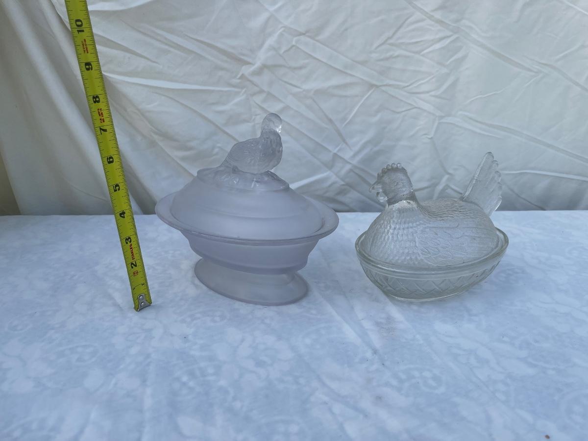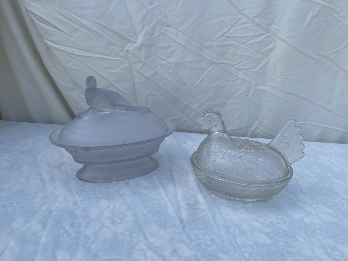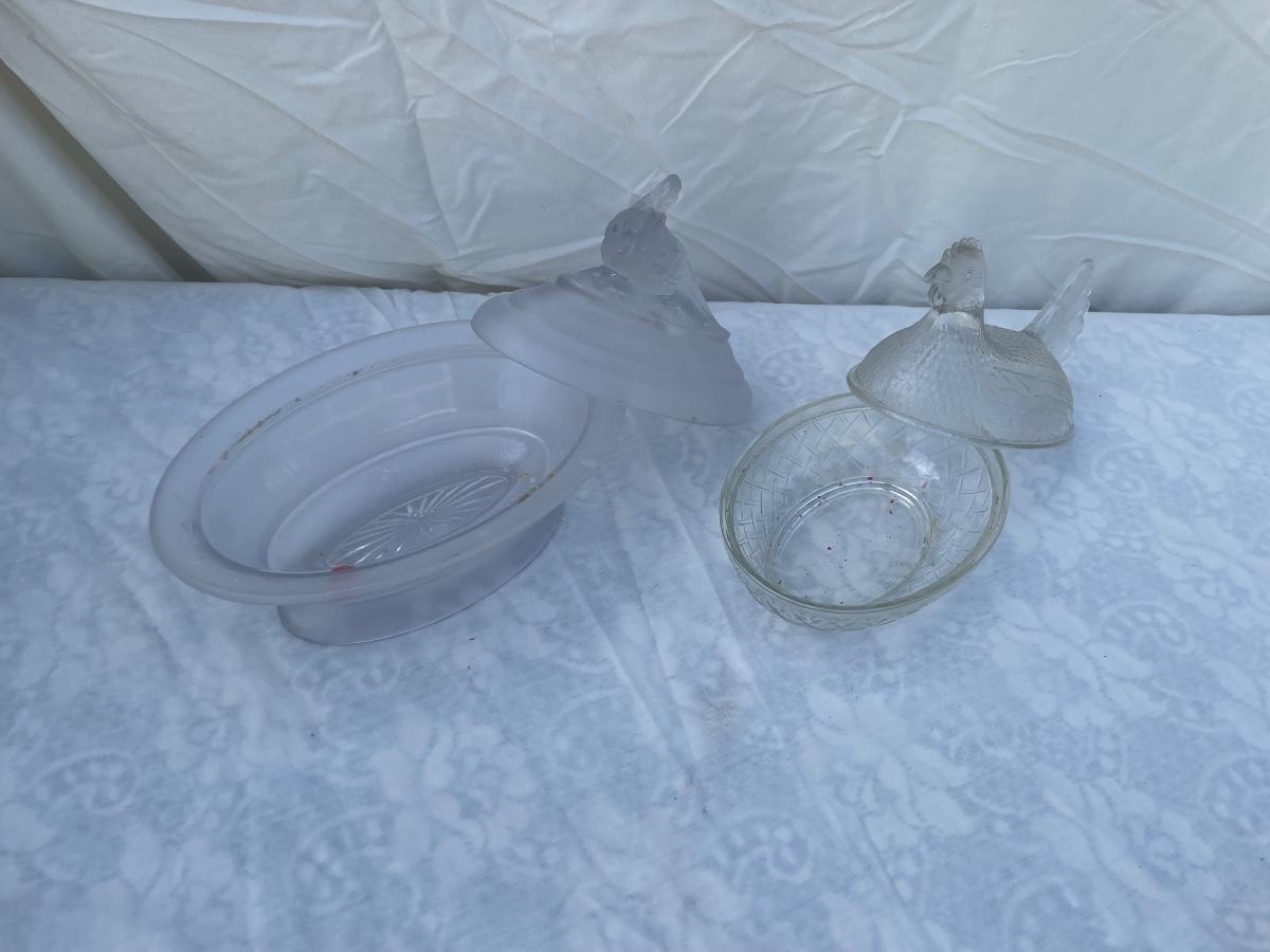 Vintage Glass Bird Lids and Dishes (Lot of 2)