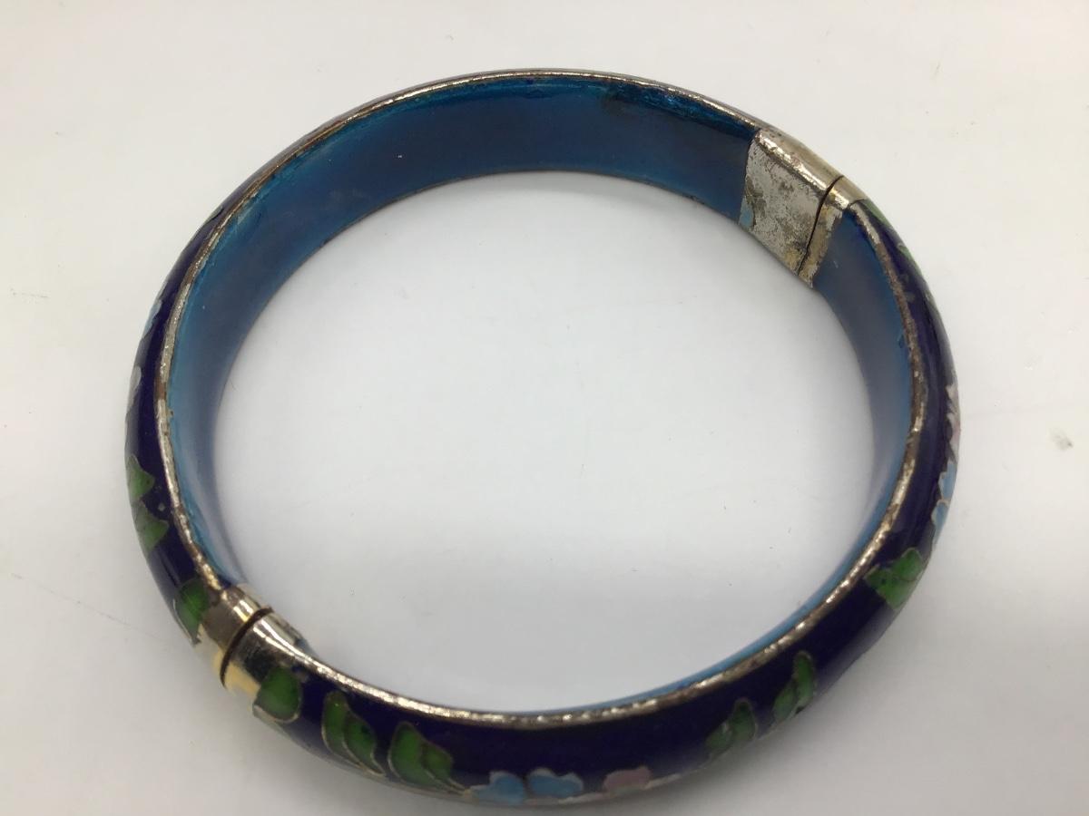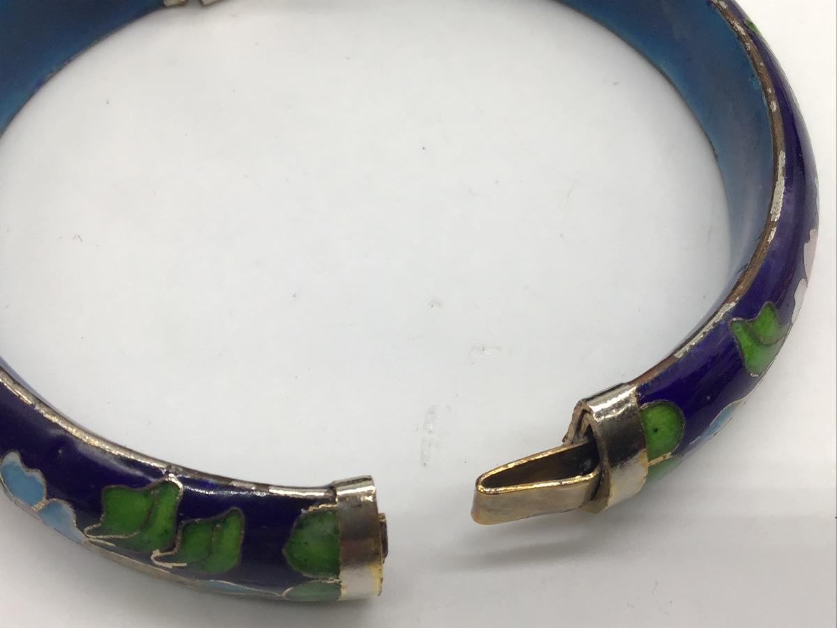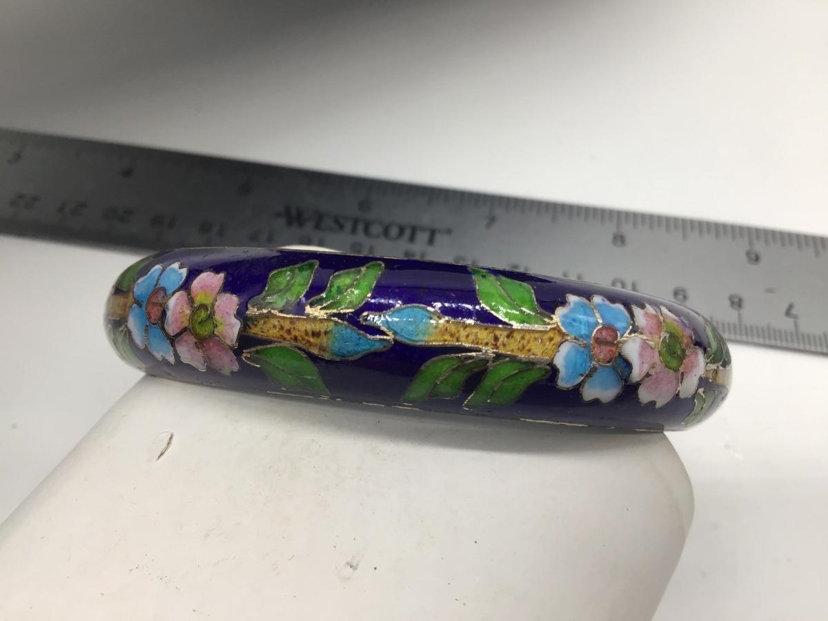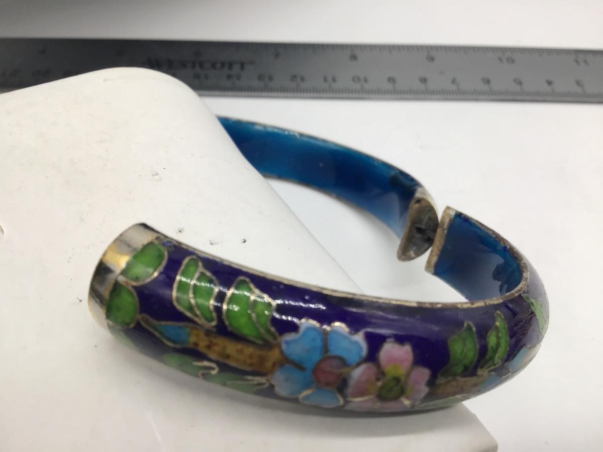 Vintage Glass Hinged Bracelet Cloisonne Carved style Bangle