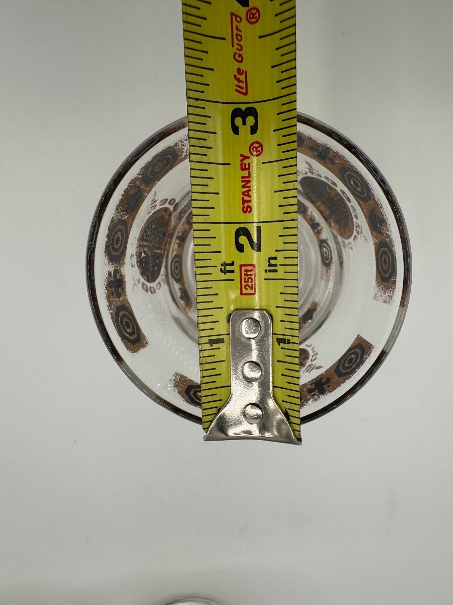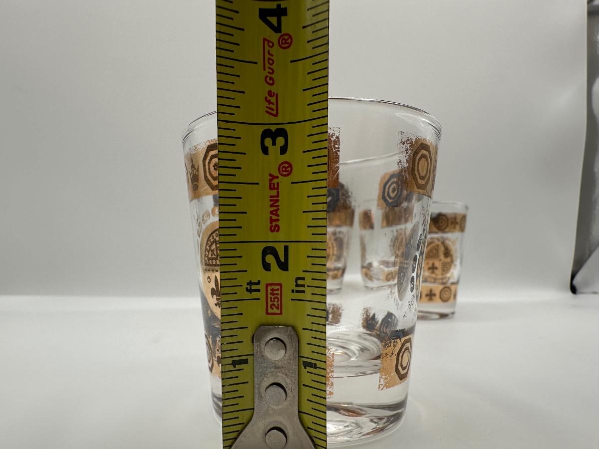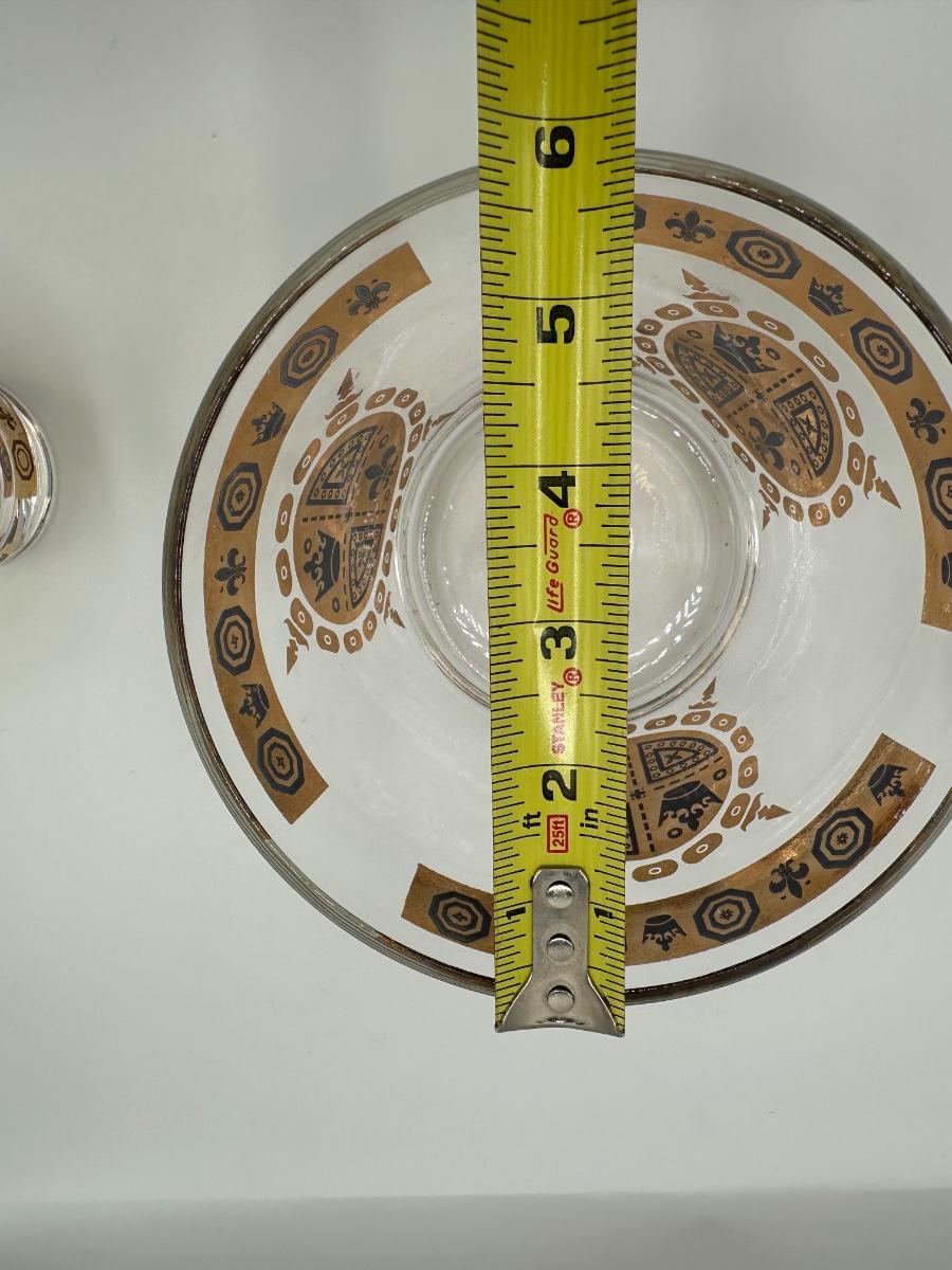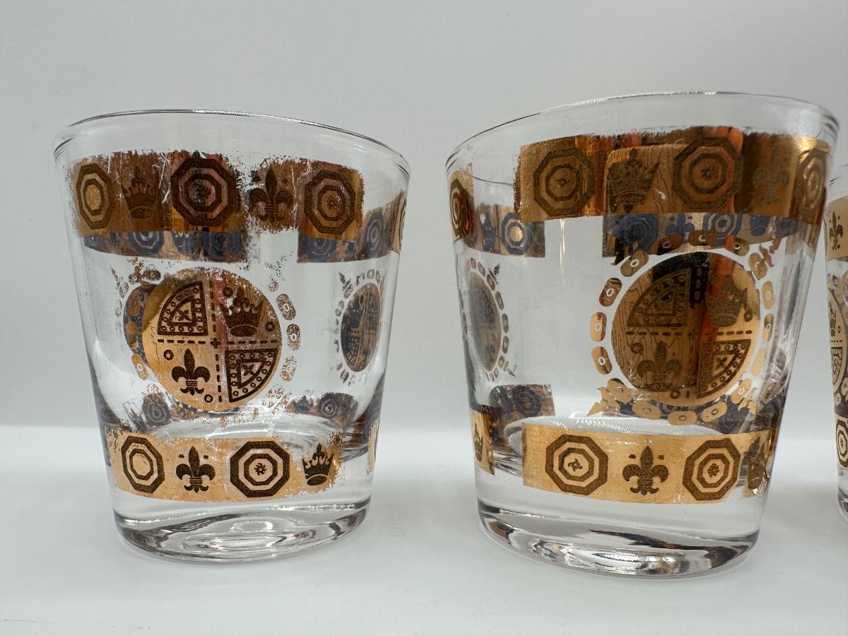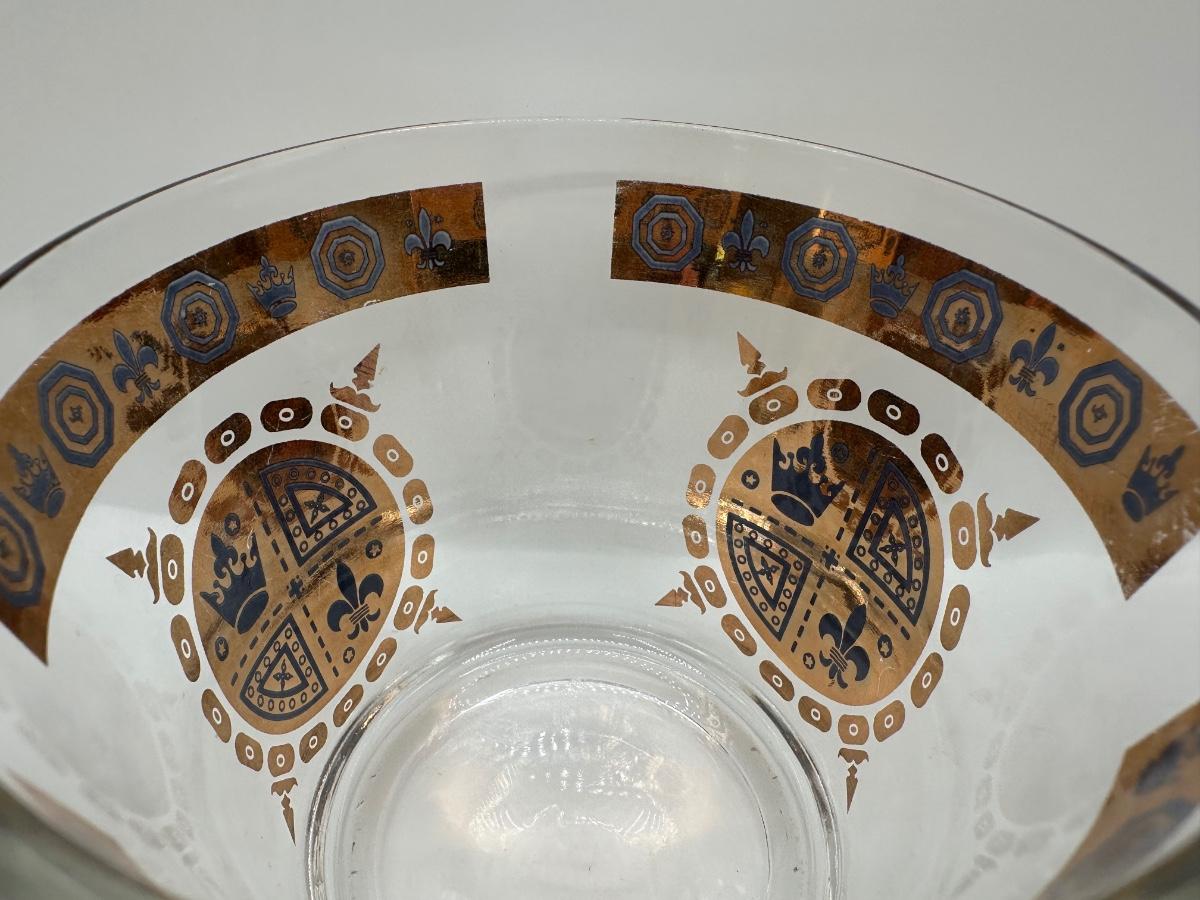 Vintage Glass Ice Bucket & 3 Glasses Gold Crown and Flu De lis Pattern