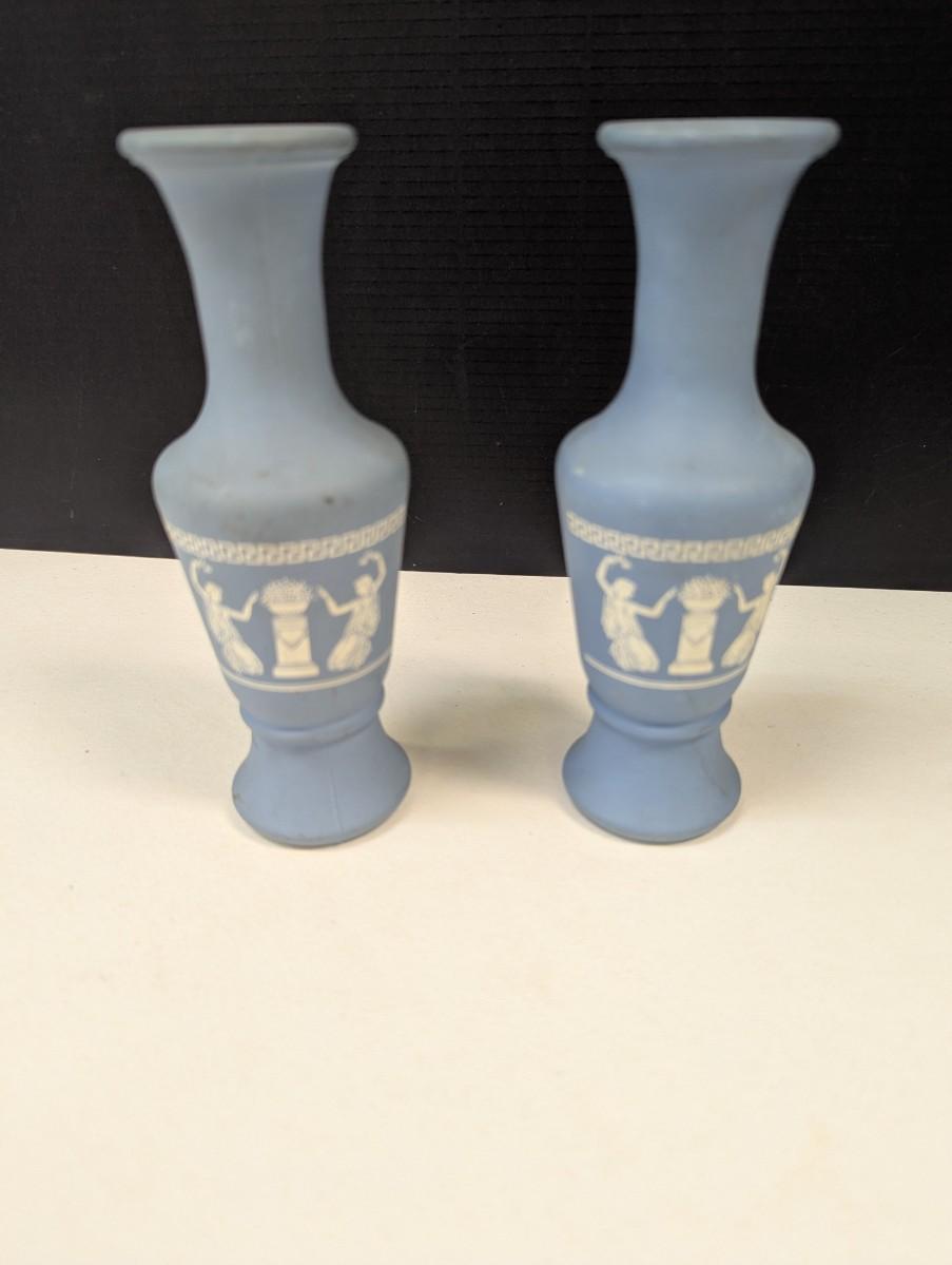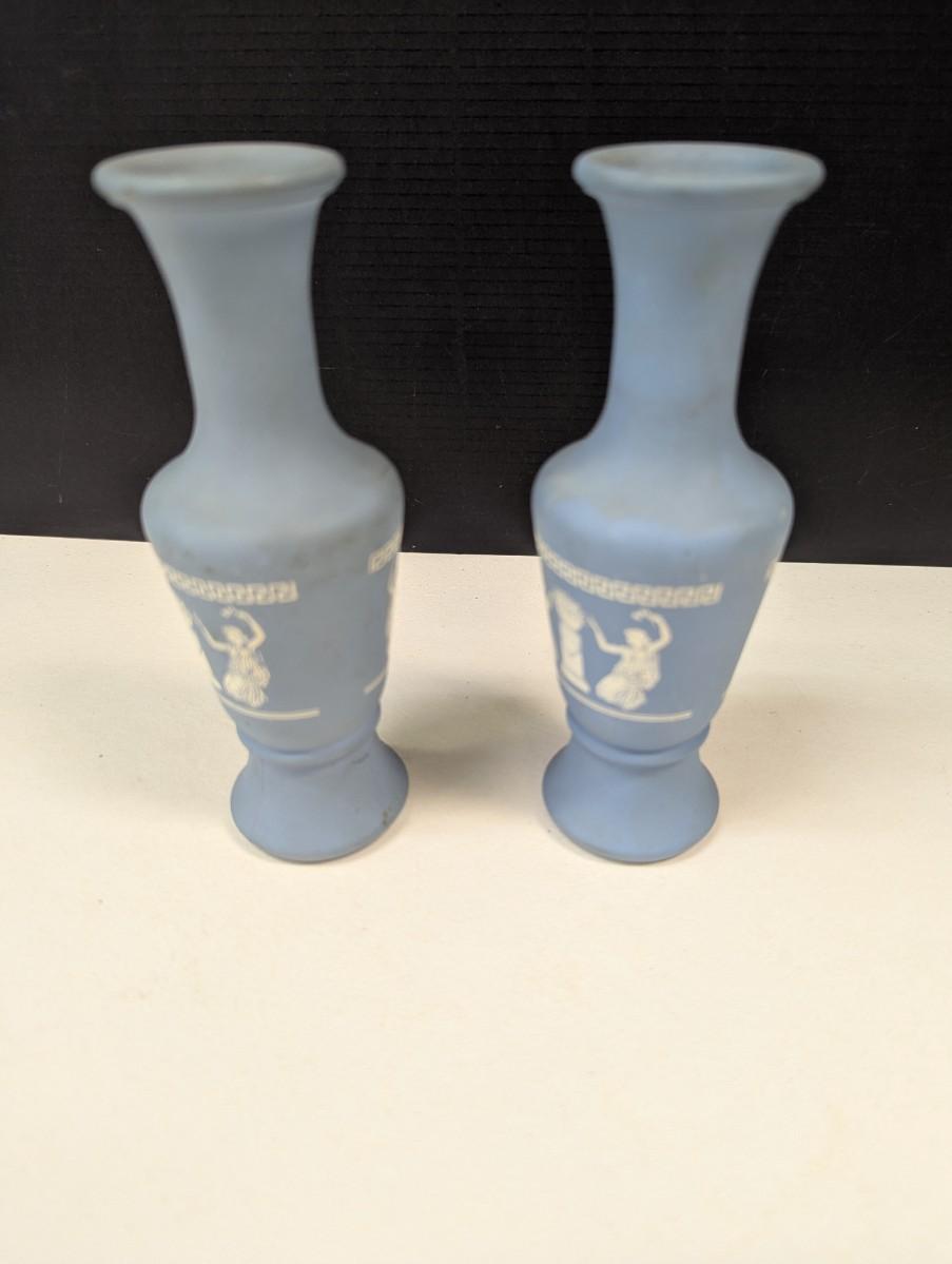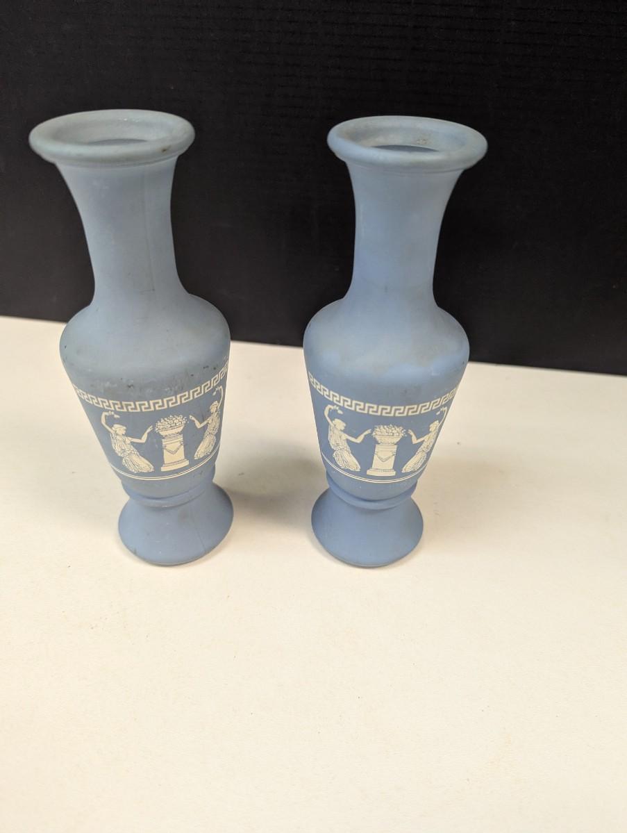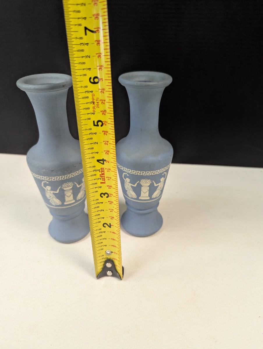 Vintage Glass Jasperware Wedgwood Style Blue Vase