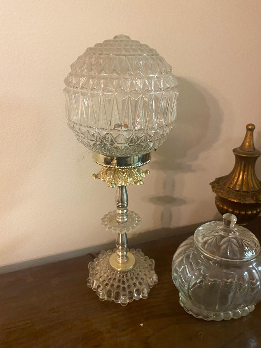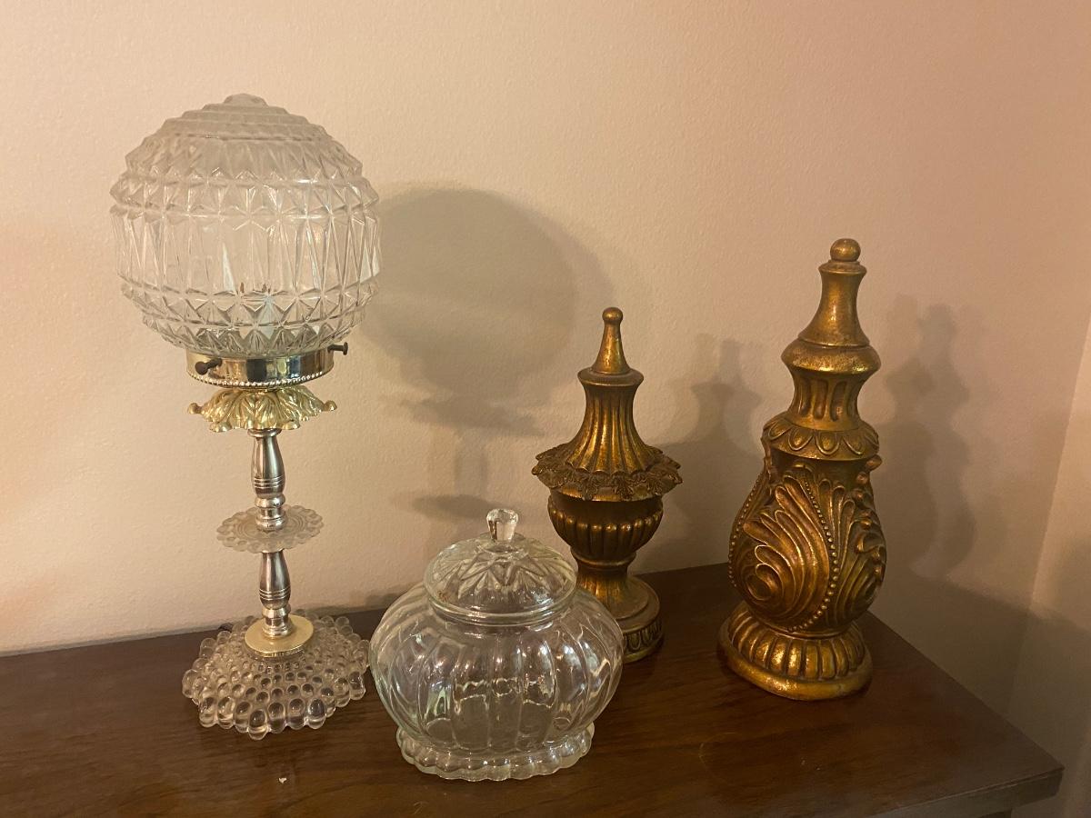 VINTAGE GLASS LAMP, HOME INTERIORS ACCENTS AND CANDY DISH
