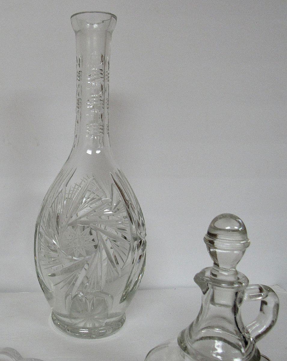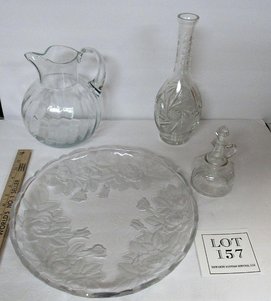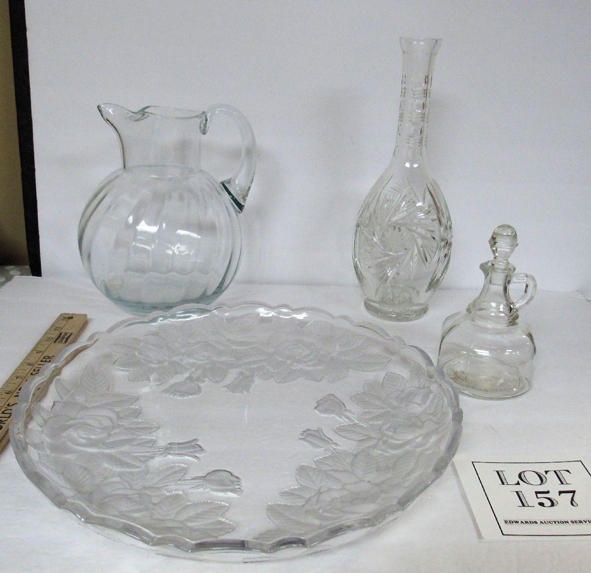 Vintage Glass: Large Tray, Lemonaid Pitcher, Decanter, Ozarks Cruet