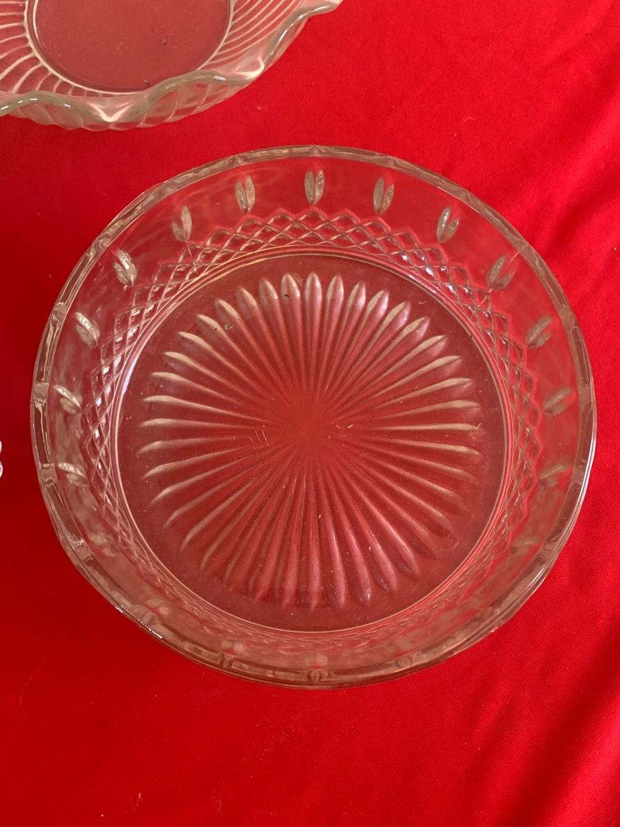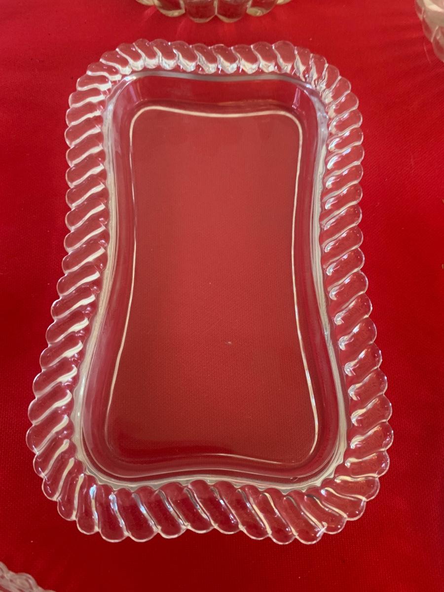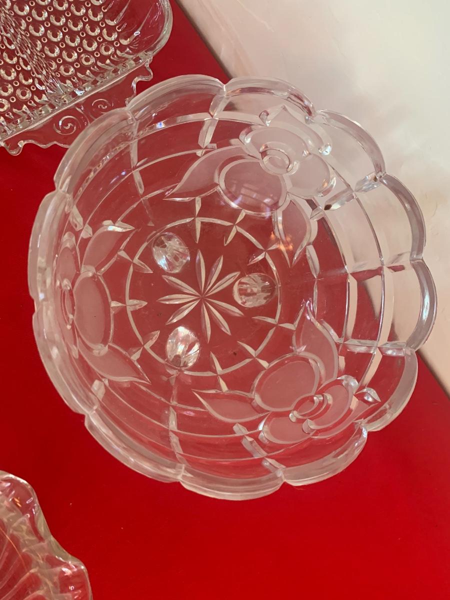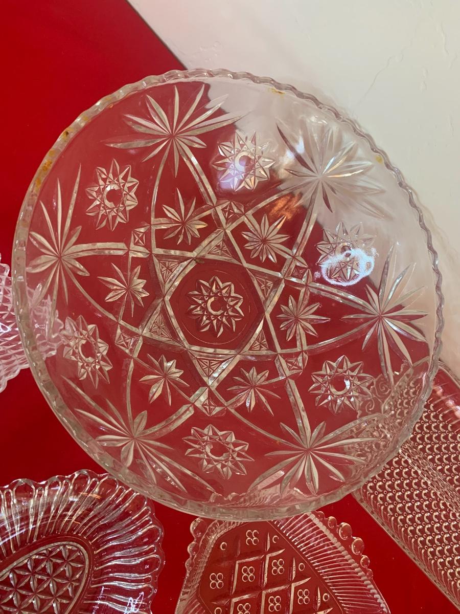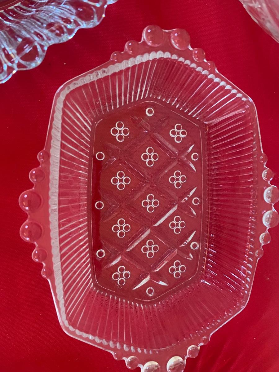 Lot includes a collection of antique and vintage clear glass dishes, bitters, bowls, and relishes. All in very good condition.
