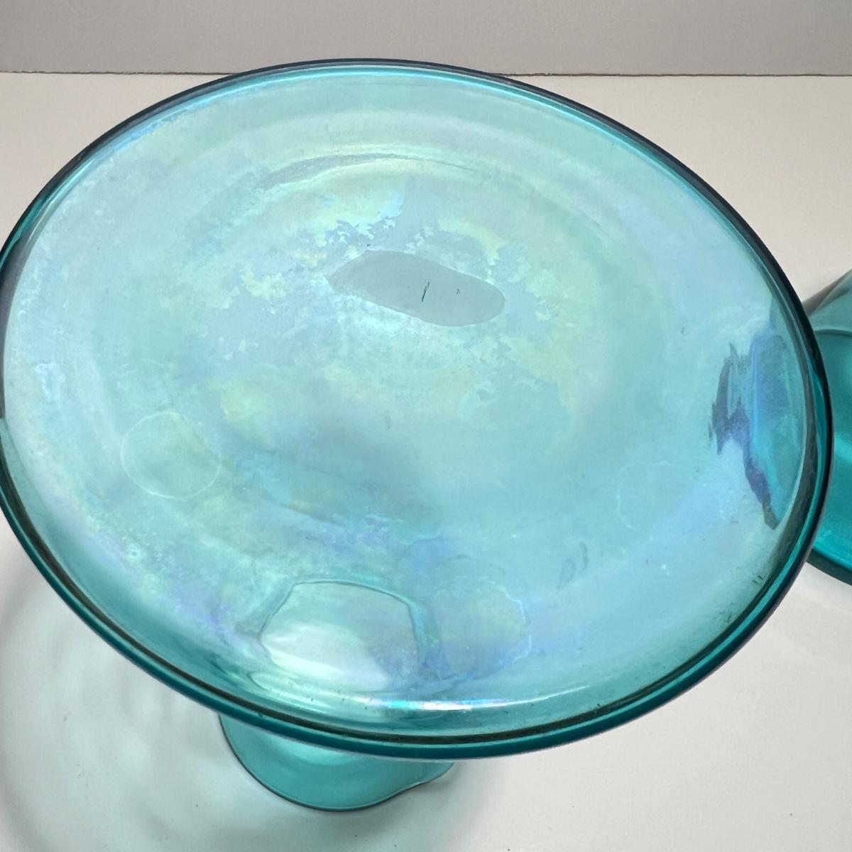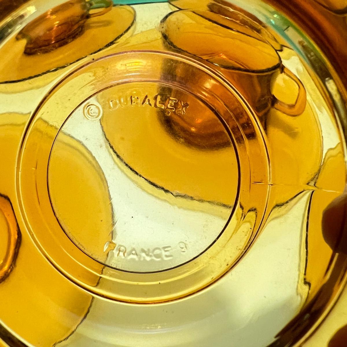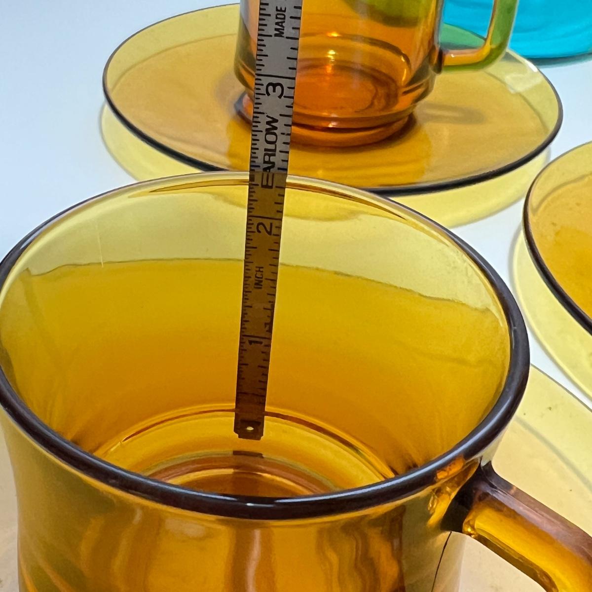 Vintage Glass Lot - 6 Duralex French Cups Saucers, 2 Aurora Borealis Blue Picthers