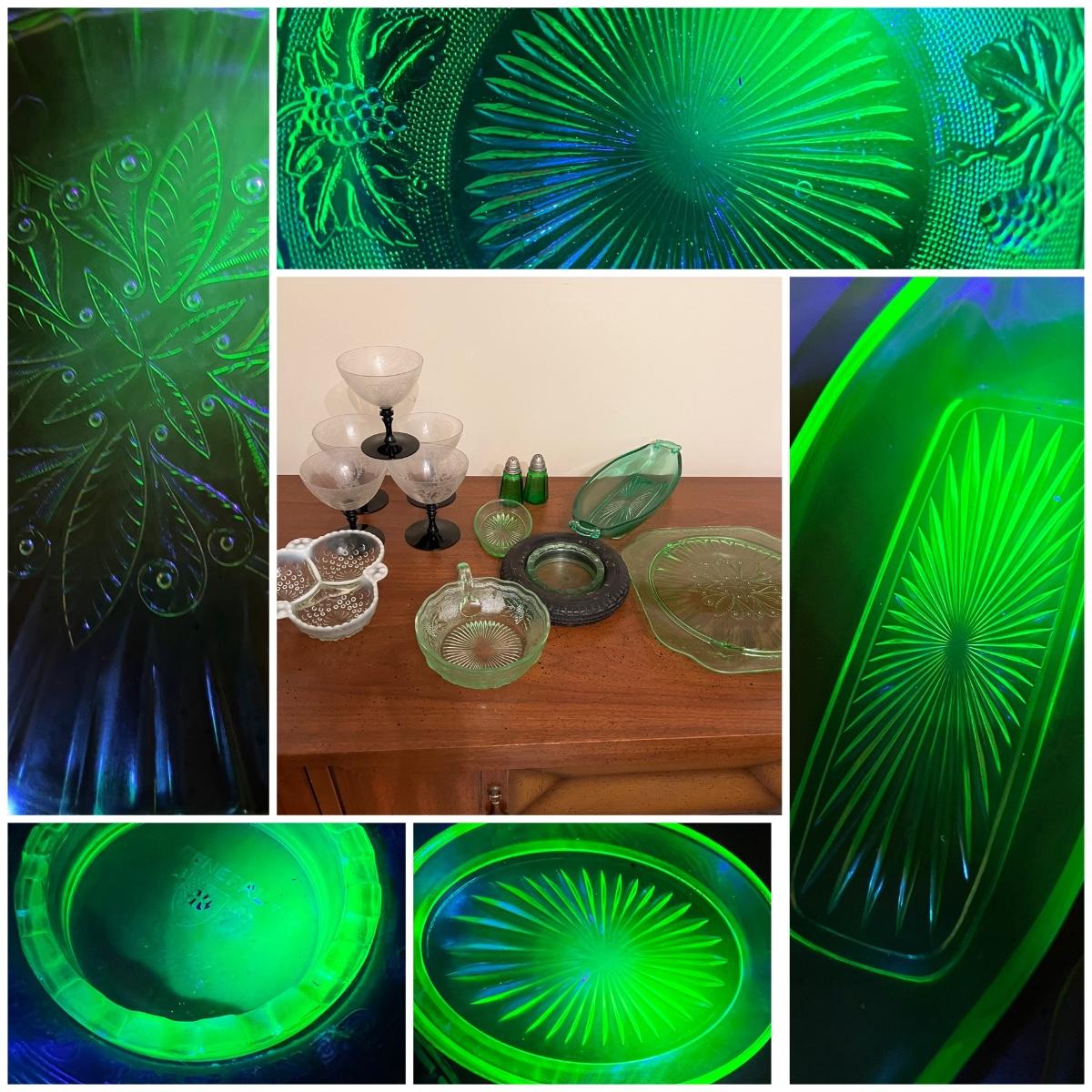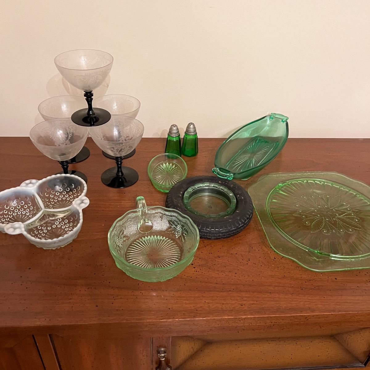 Vintage Glass Lot - Uranium, Hobnail, Etched