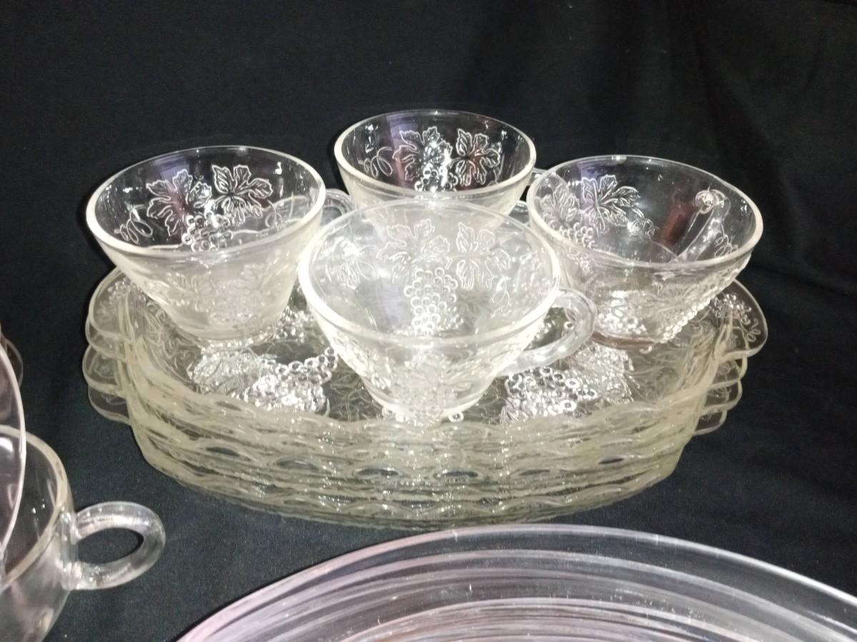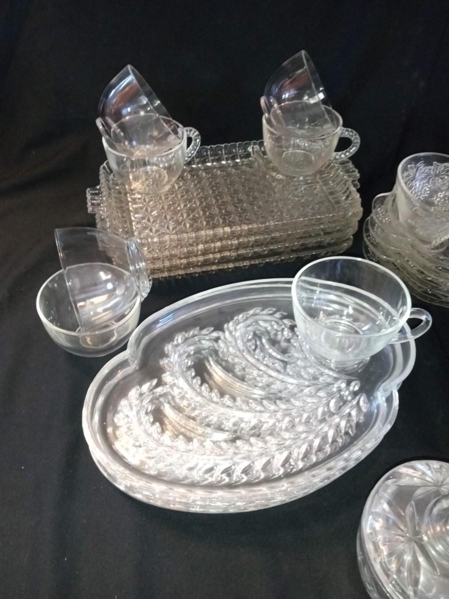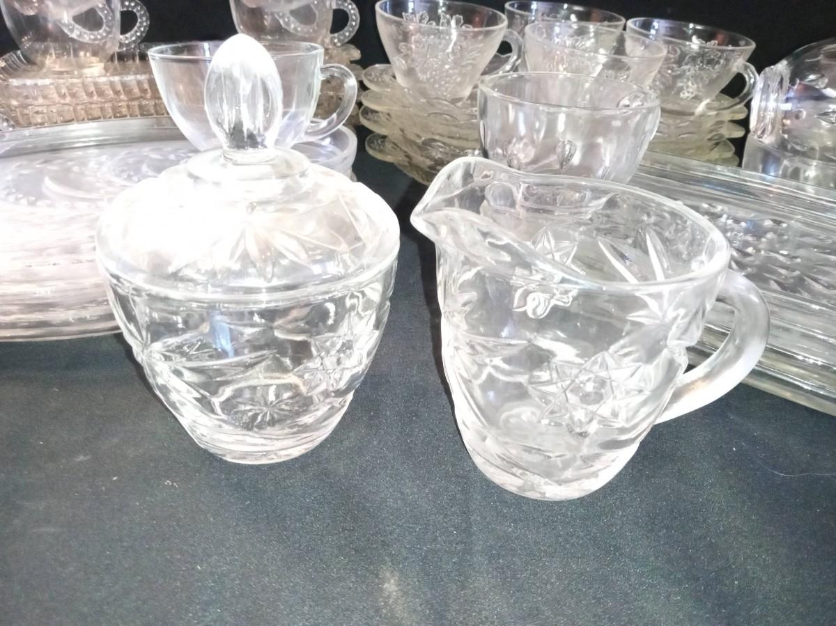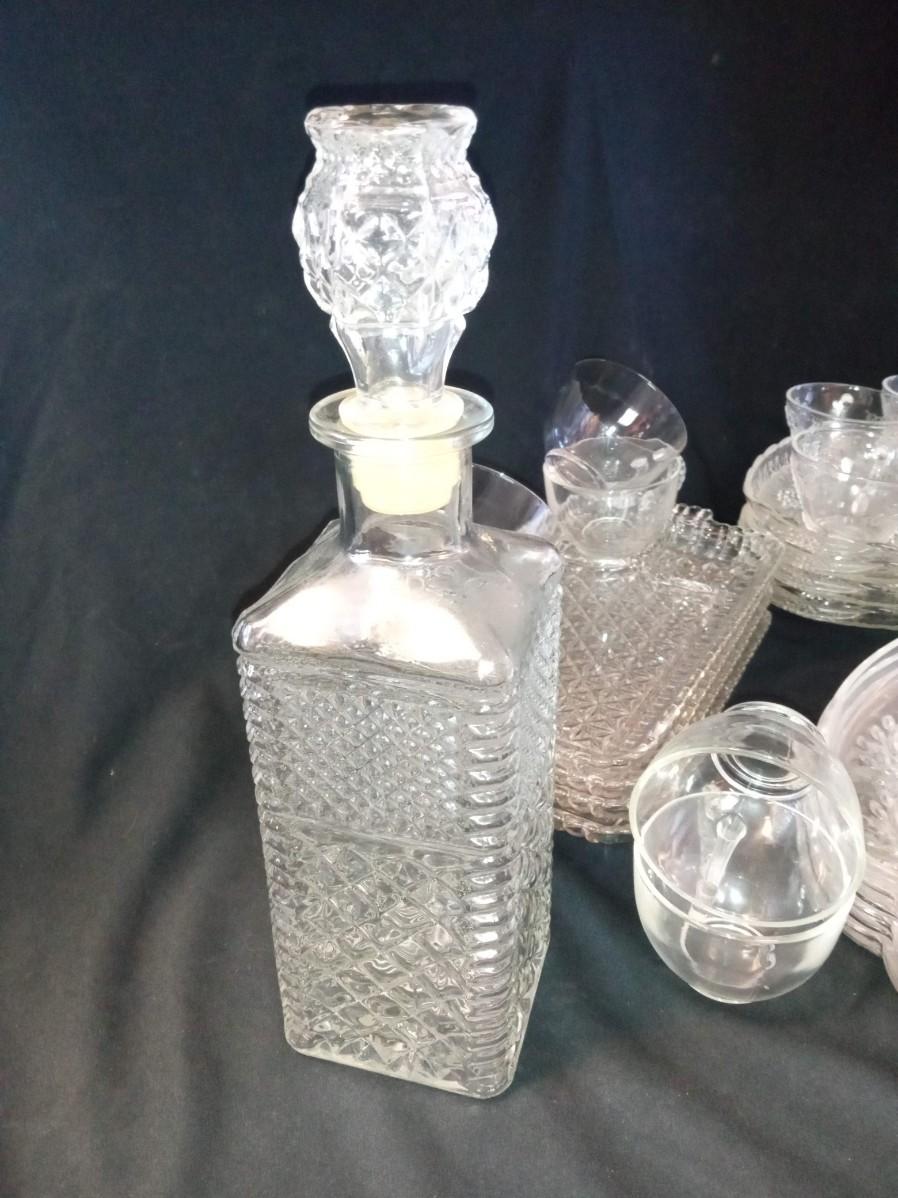 GLASS DECANTER AND CREAM AND SUGAR SET