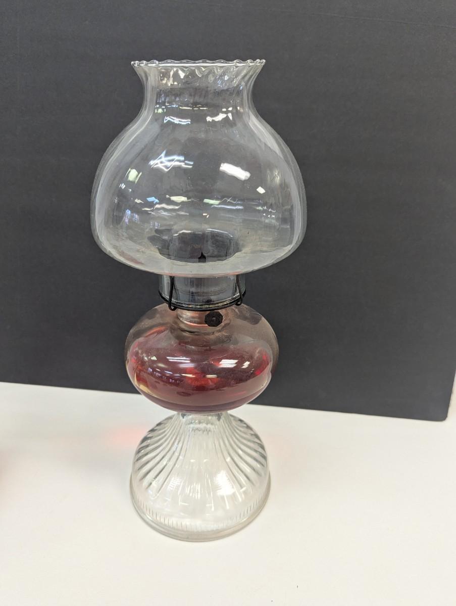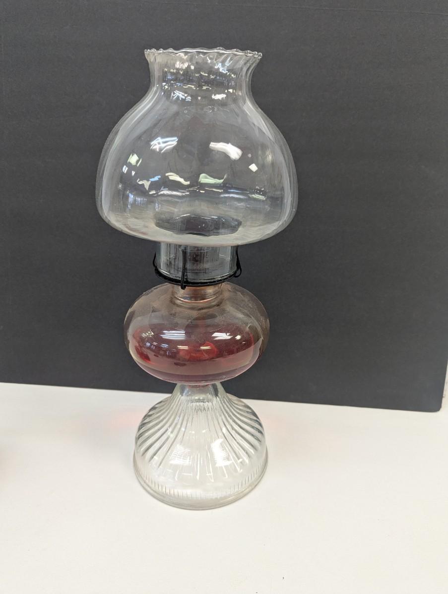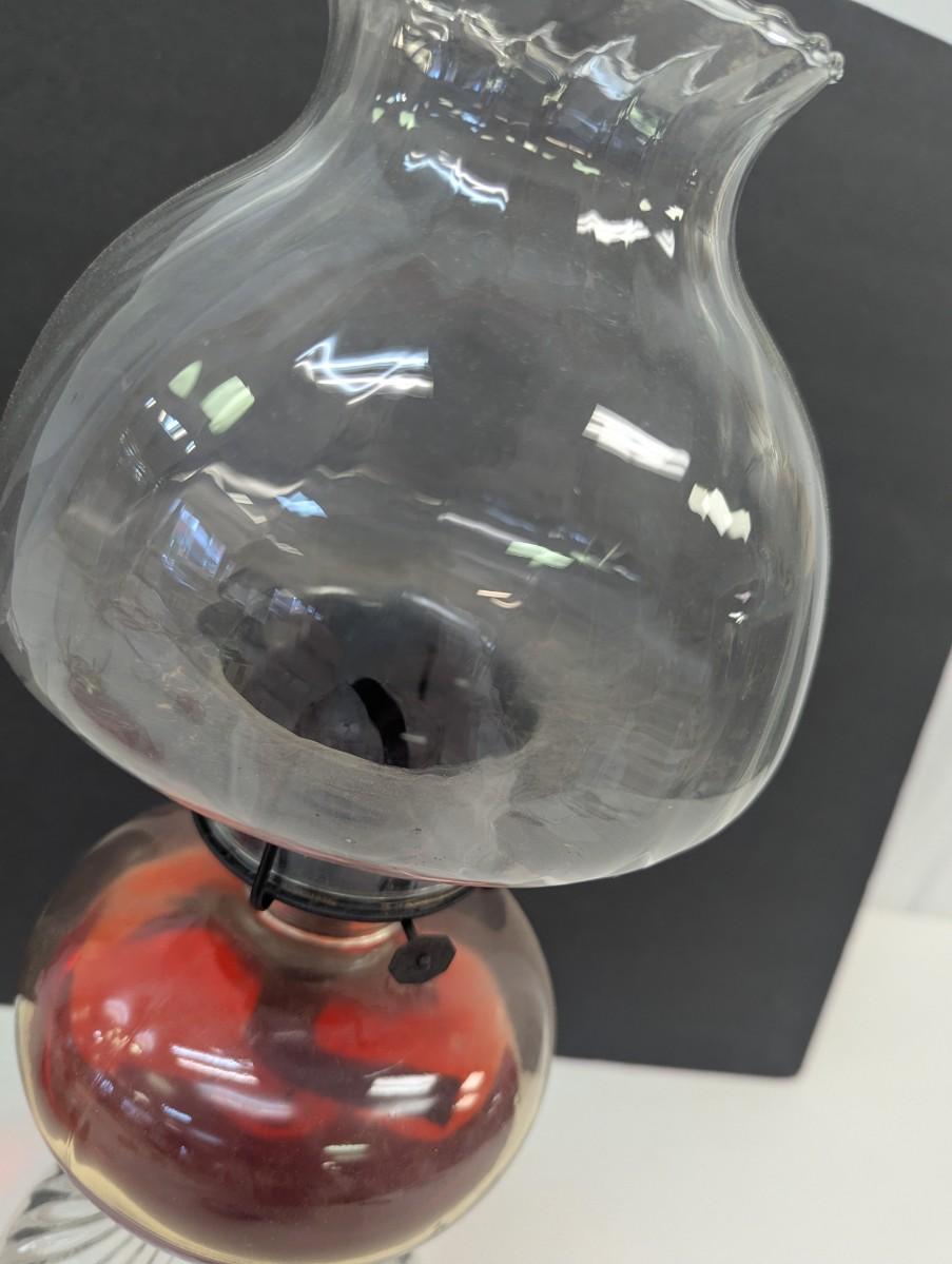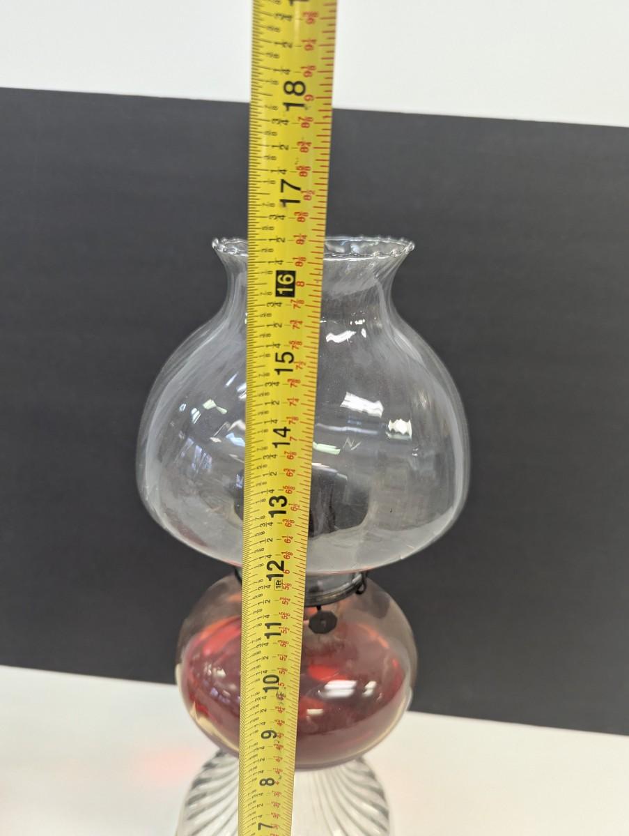 Vintage Glass Oil Lamp With Glass Swirl Shade