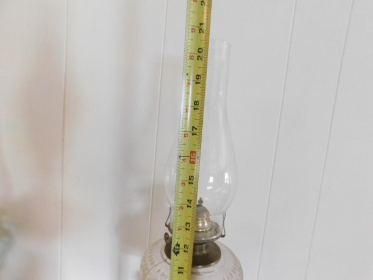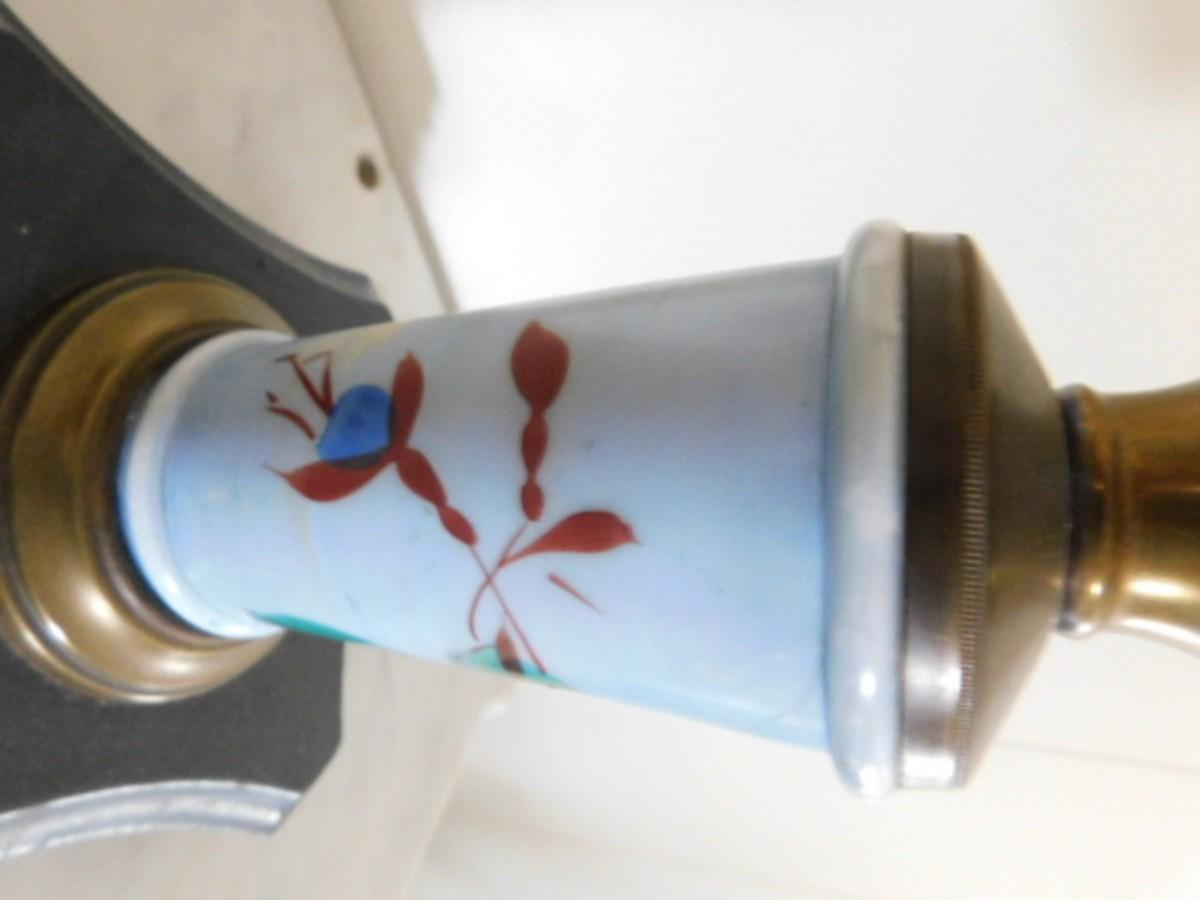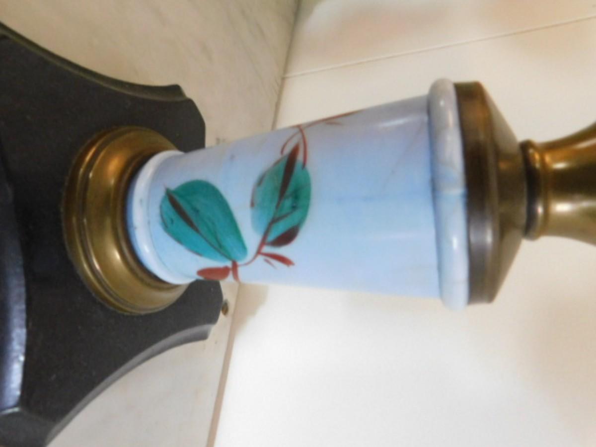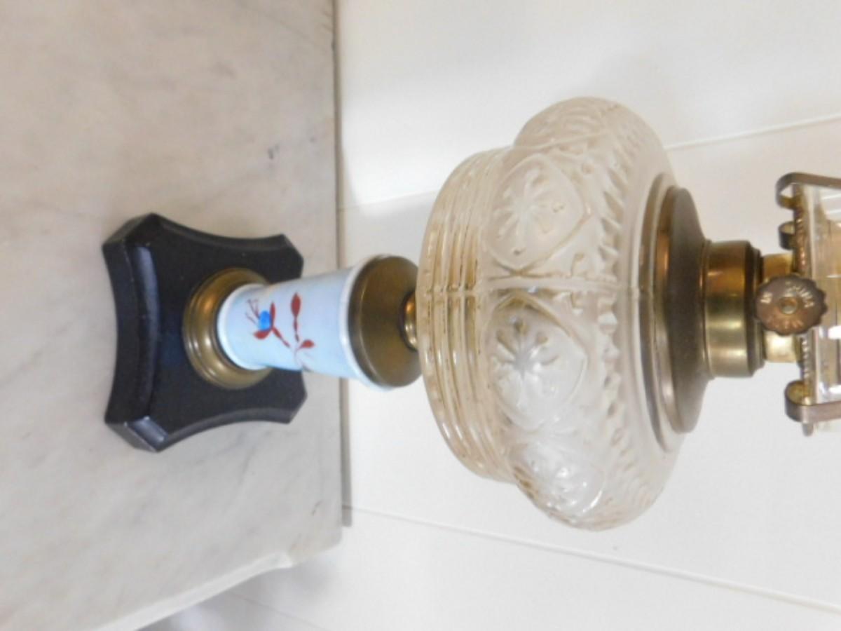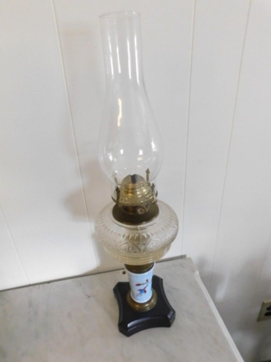 Vintage Glass Oil Lamp with Hand Painted Porcelain Pedestal  (L25)
