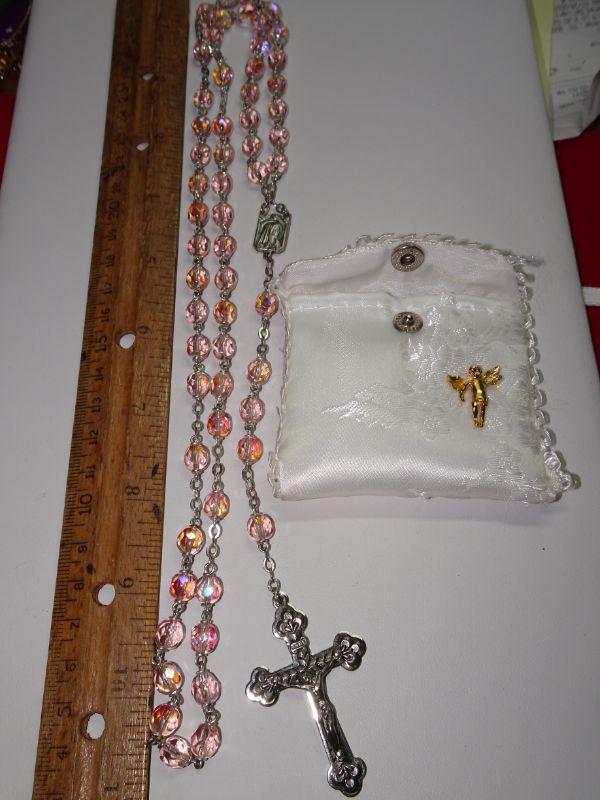 Vintage Glass Opalescent Rosary made in Czech Republic, Beautiful Pink, Prettier in person