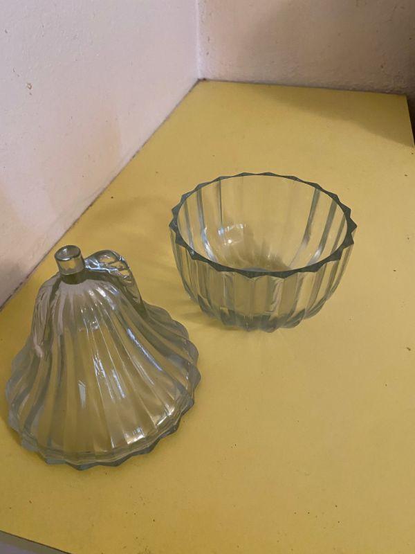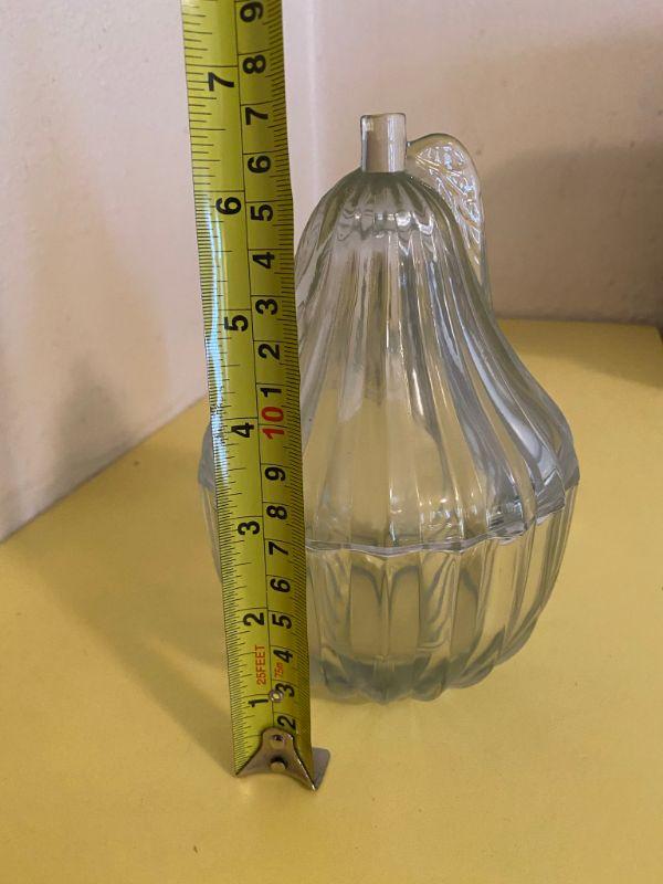 Vintage ribbed glass pear shaped candy dish. About 6" size. Good condition, no chips just dusty.