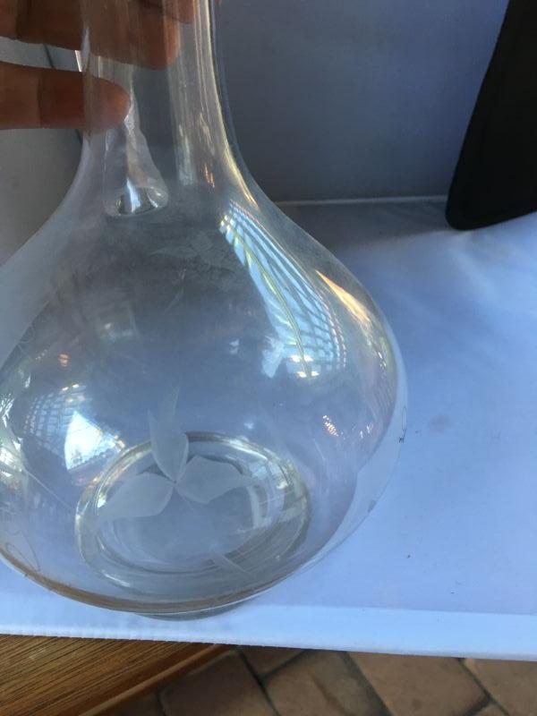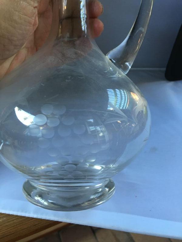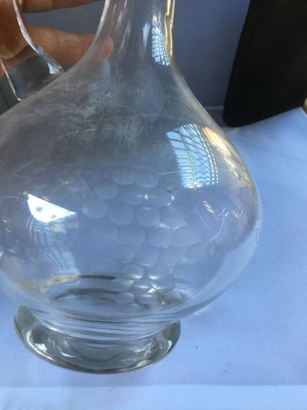 Nicely etched with what looks like grapes. Measures 10.5 " X 6.5".