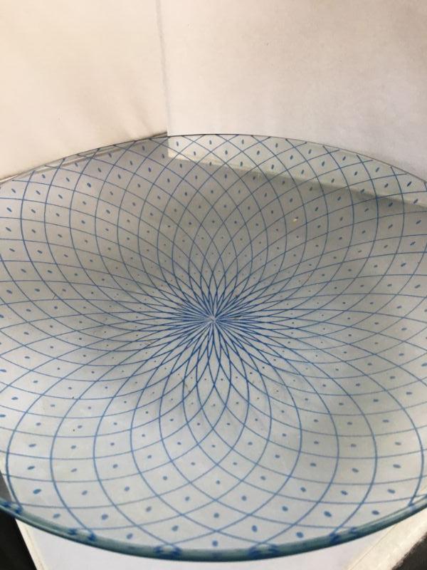 Vintage Glass Platter with Blue Lines Design
