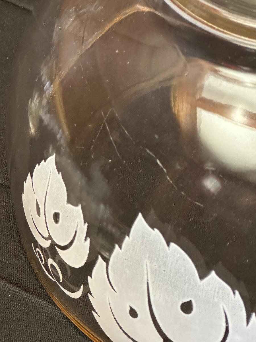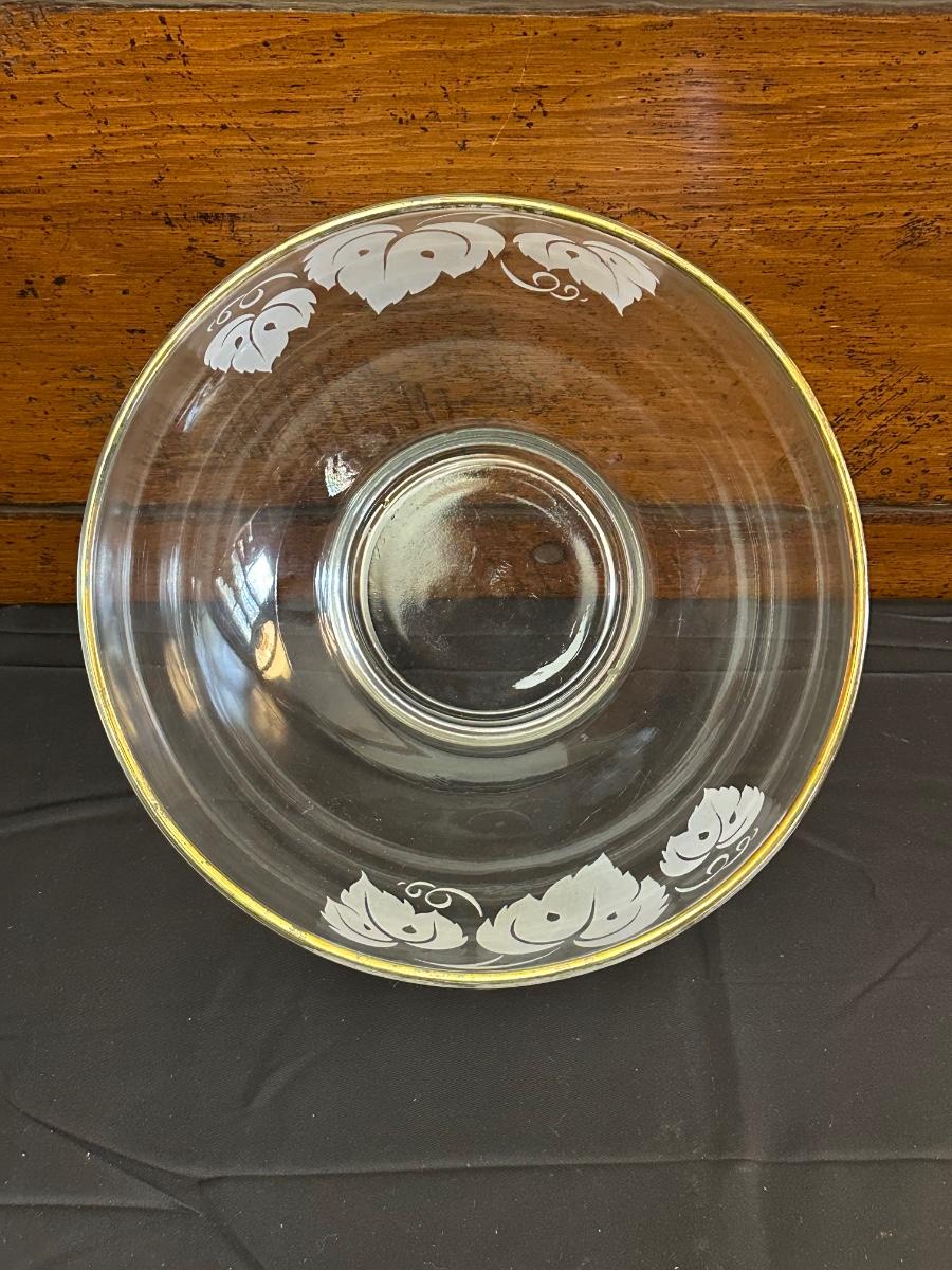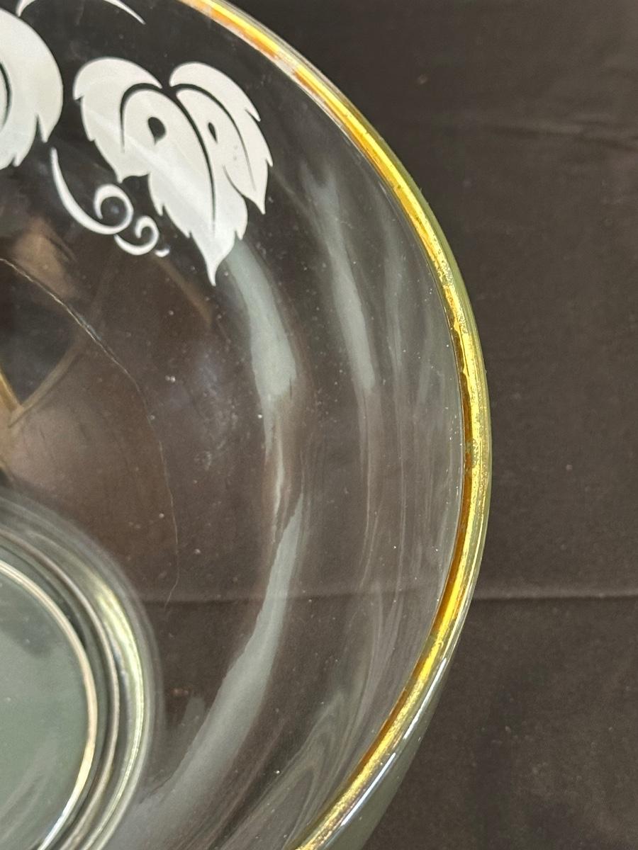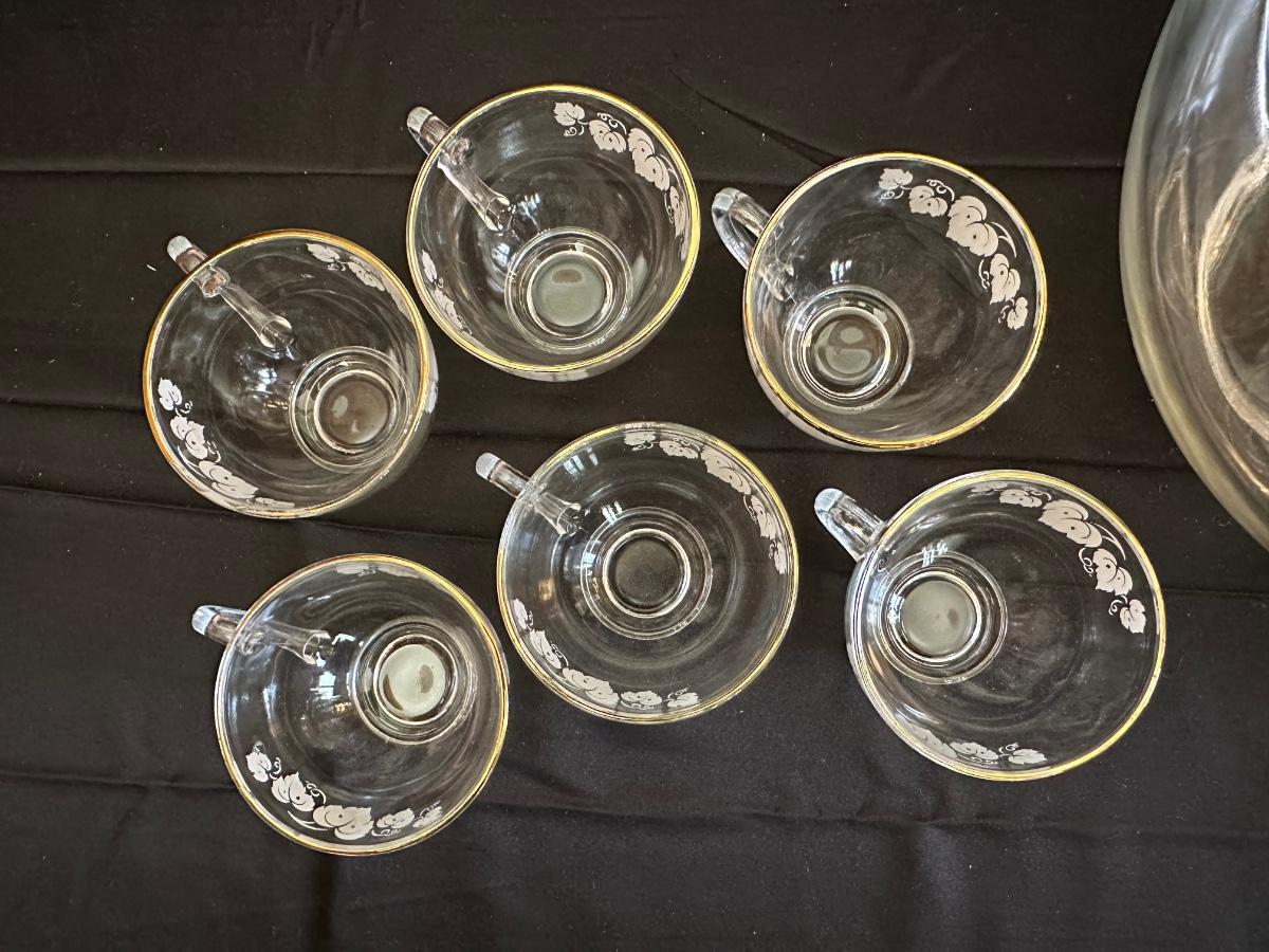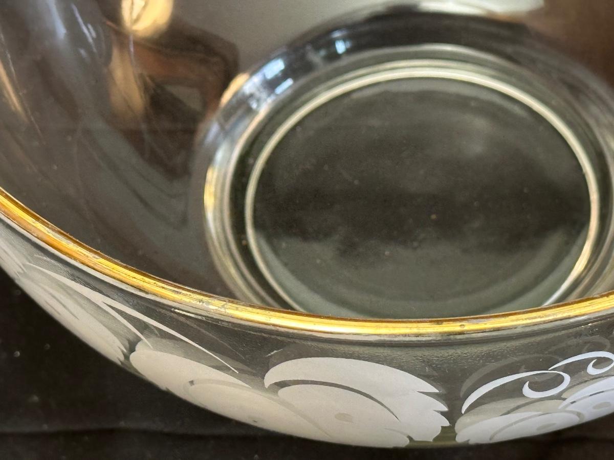 Vintage Glass Punch Bowl and Cups with Frosted Leaf Pattern