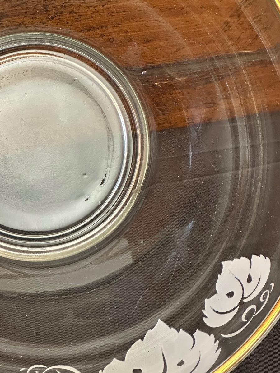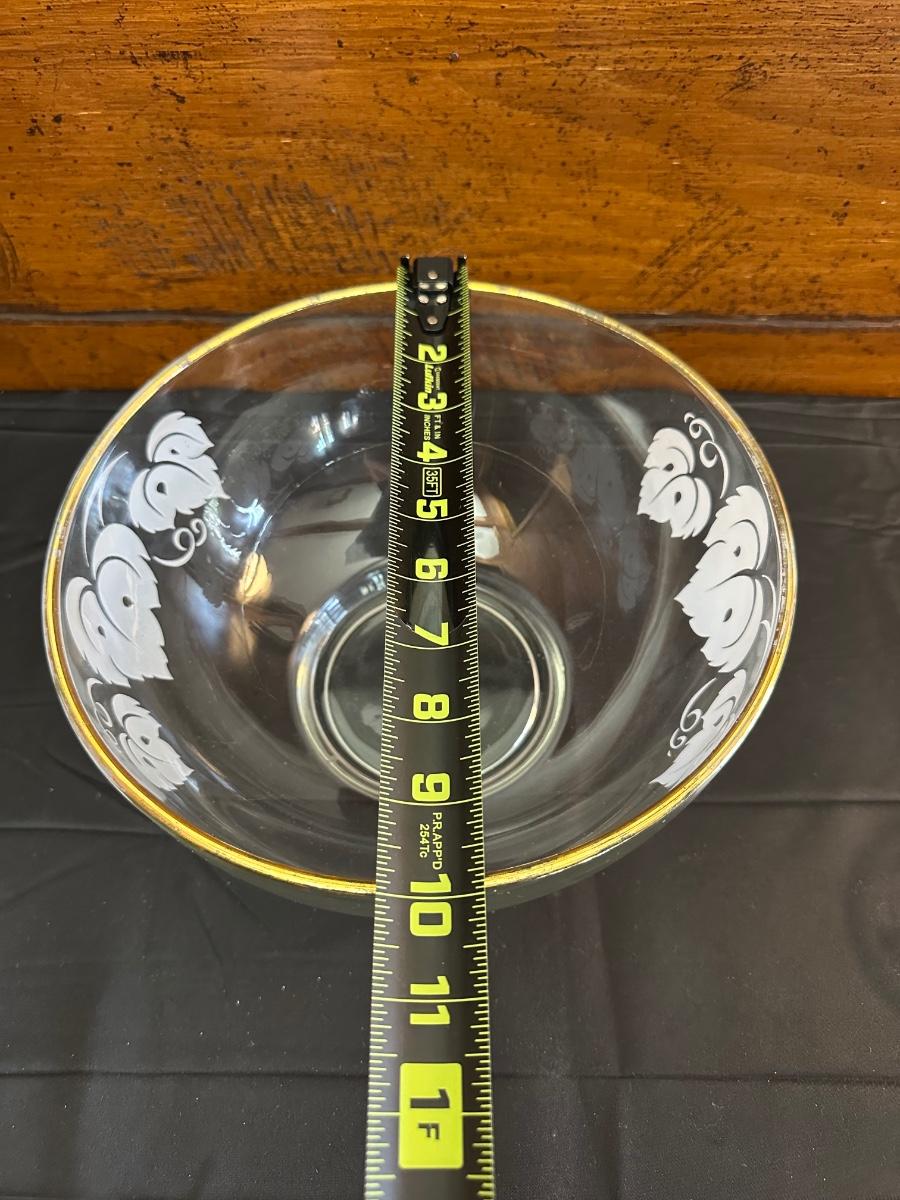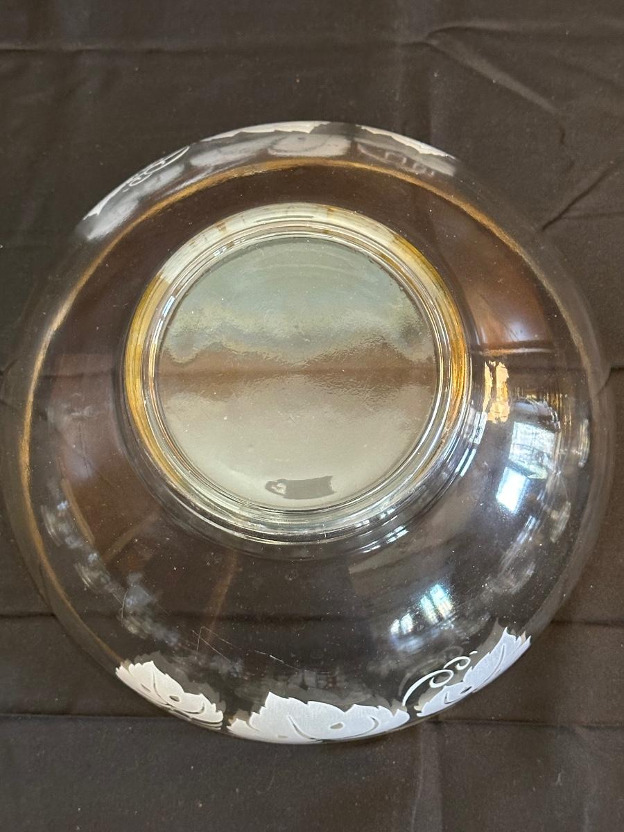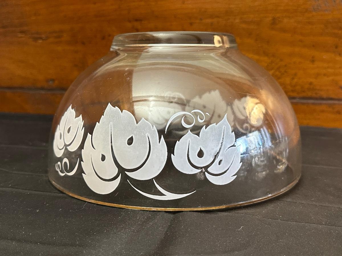 Vintage Glass Punch Bowl and Cups with Frosted Leaf Pattern