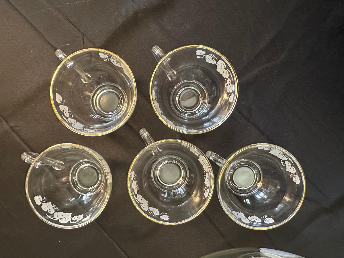 Vintage/Mid Century Modern, comes with 11 cups and what looks like a plate for a ladle. Ladle not included.