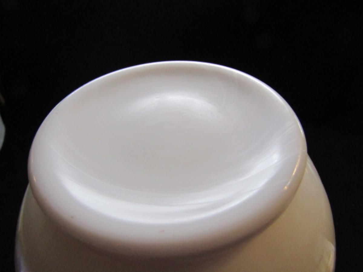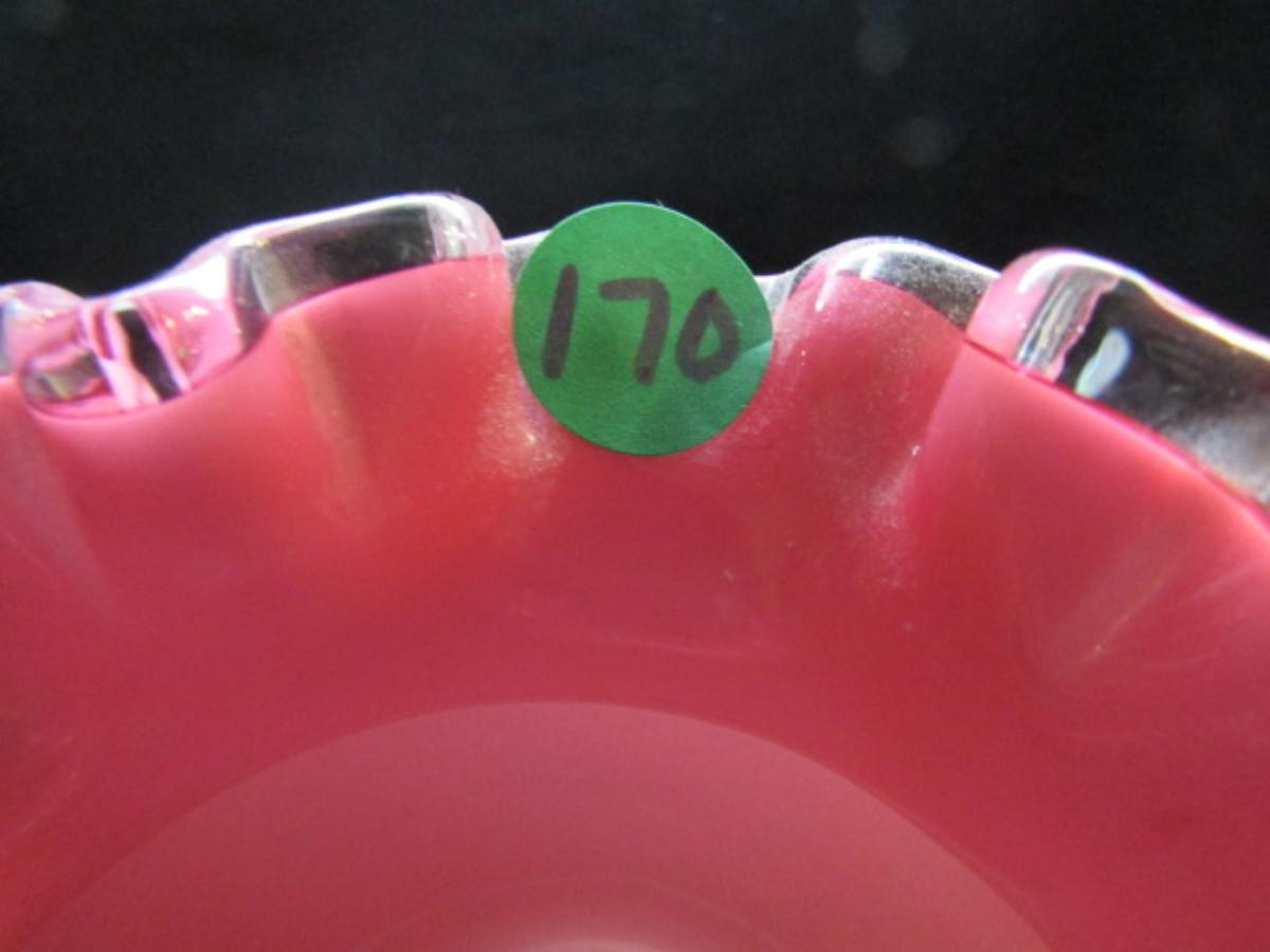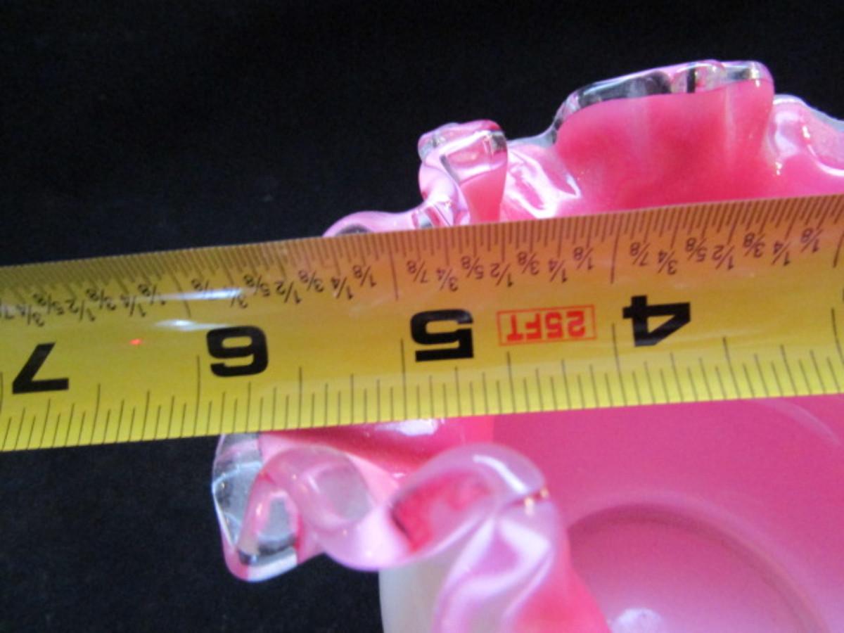 Vintage Glass Rose Bowl with Ruffled Top- White on Pink- Possibly Fenton (#170)