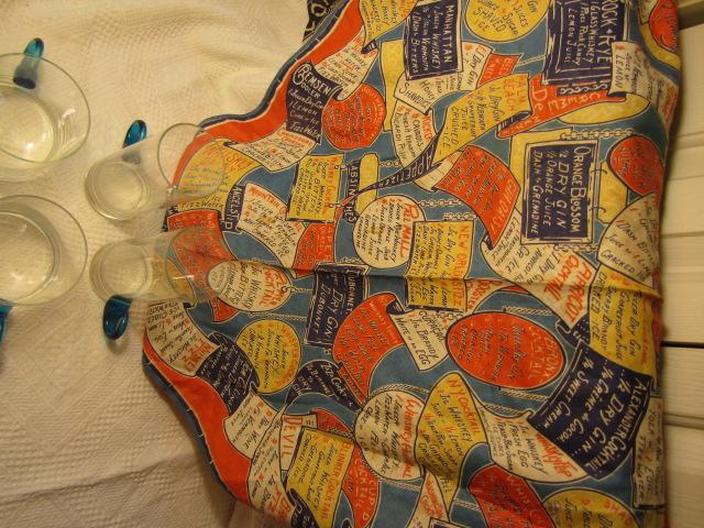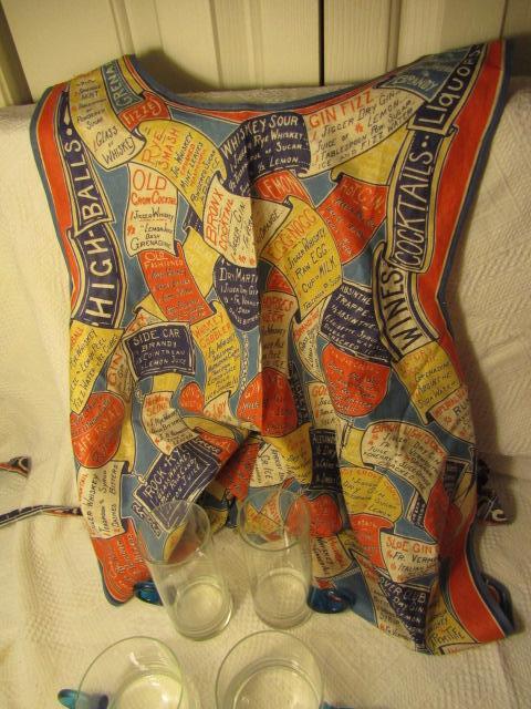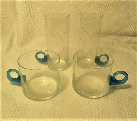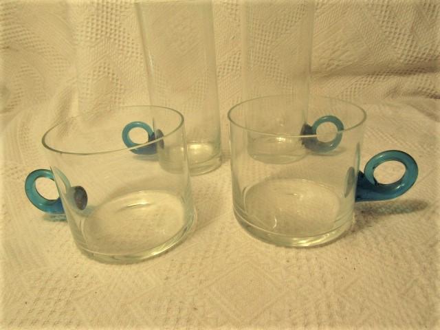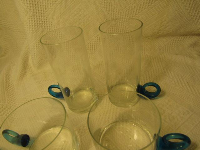 Vintage Glass High Ball and Cocktail Set with Blue Curled Handles includes Bar Keep Apron
