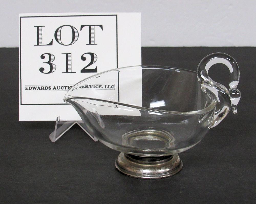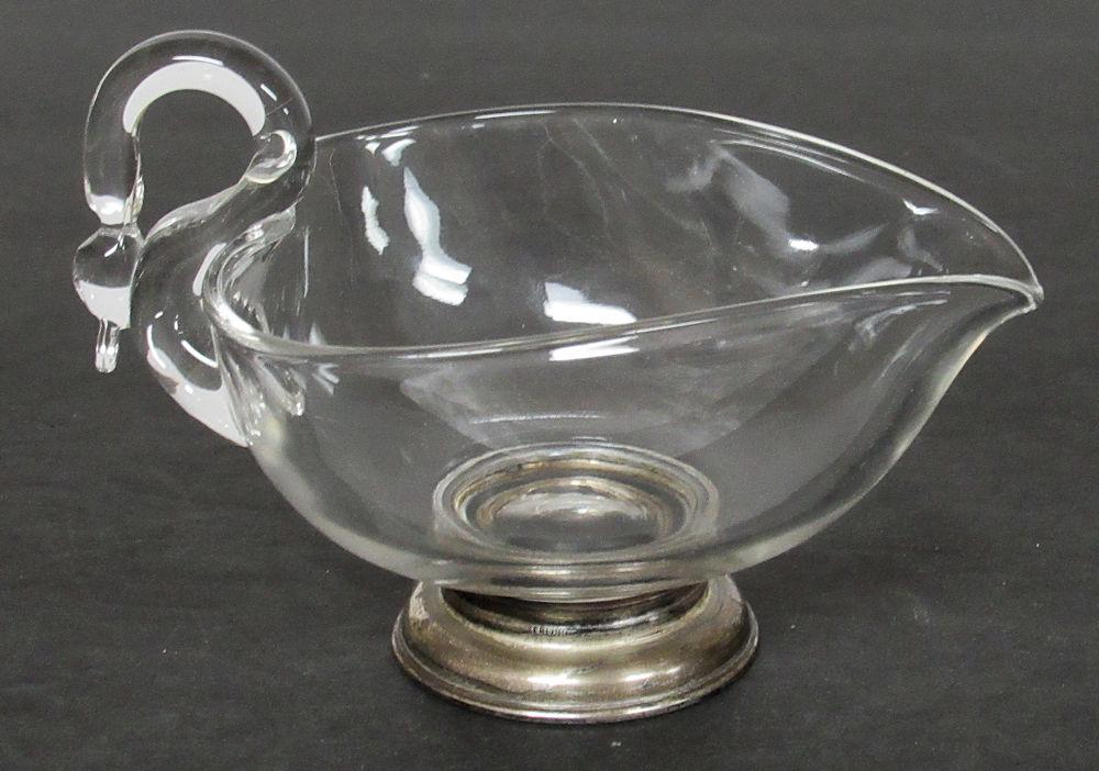Vintage Glass Swan Candy Dish With Sterling Silver Base