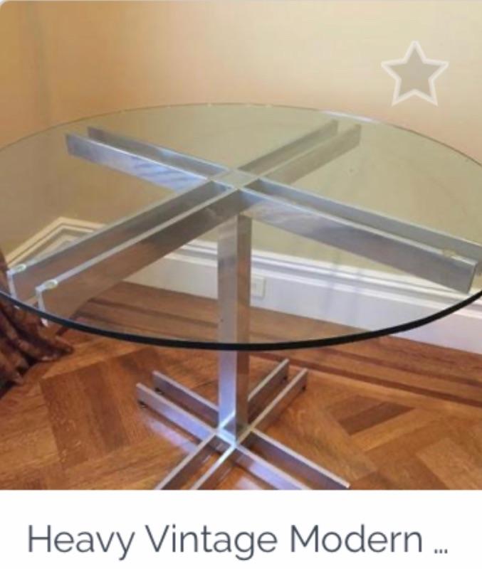 Vintage Glass Table / Chrome Base: Perfect Condition!