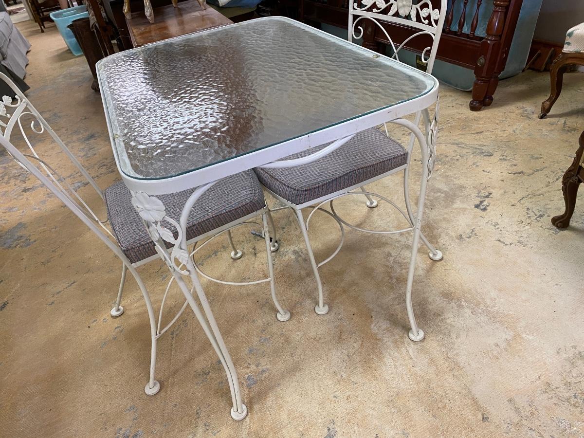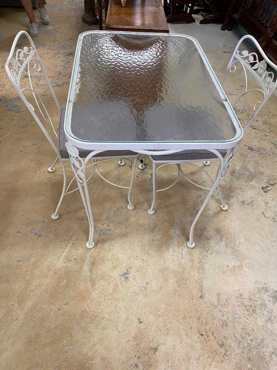 Vintage Glass Top Outdoor Iron Table and 2 Chairs 37x29x25