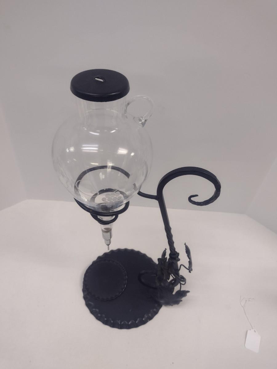 Vintage Glass Wine Aerator/Decanter with Wrought Metal Stand