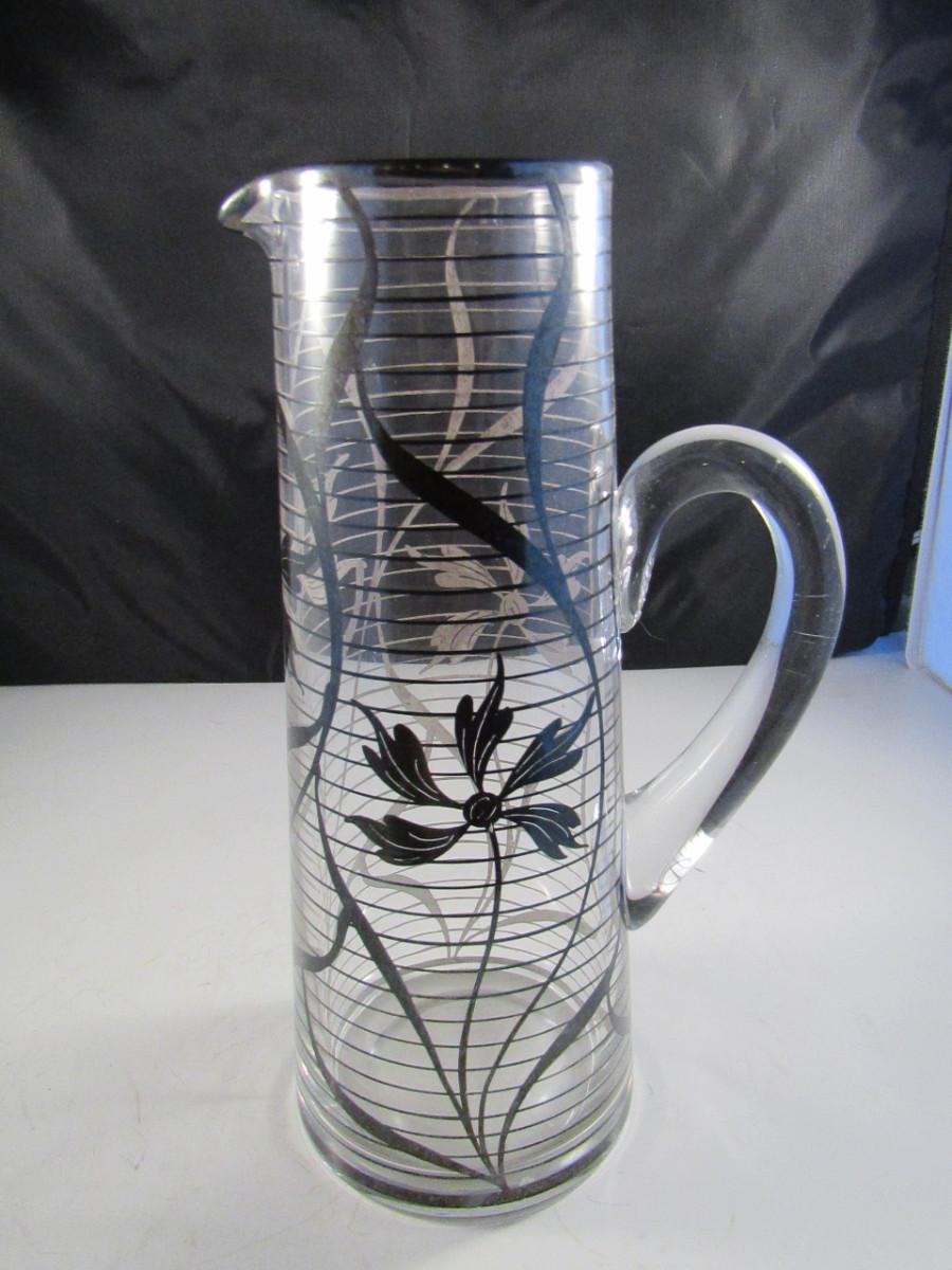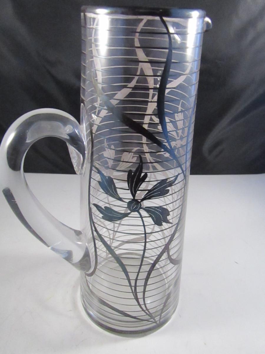 Vintage Glass with Silver Overlay Pitcher- Approx 10" Tall