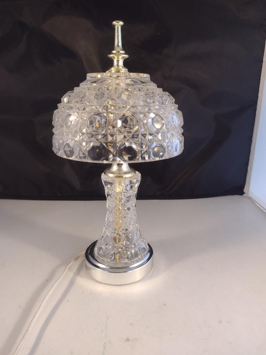 Vintage Glass/Crystal Small Accent Table Top Lamp- Approx 11 3/4" Tall