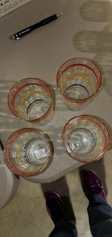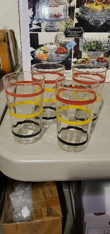 Vintage Glasses Set of 4 Red Yellow Black Rings Tumblers Drinking Glasses (item #51)
