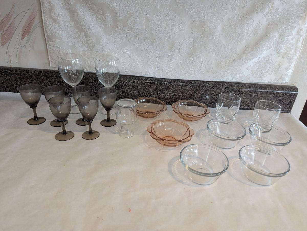 Vintage Glasses & Bowls Smoked Port Glasses Flower Trinket Bowls