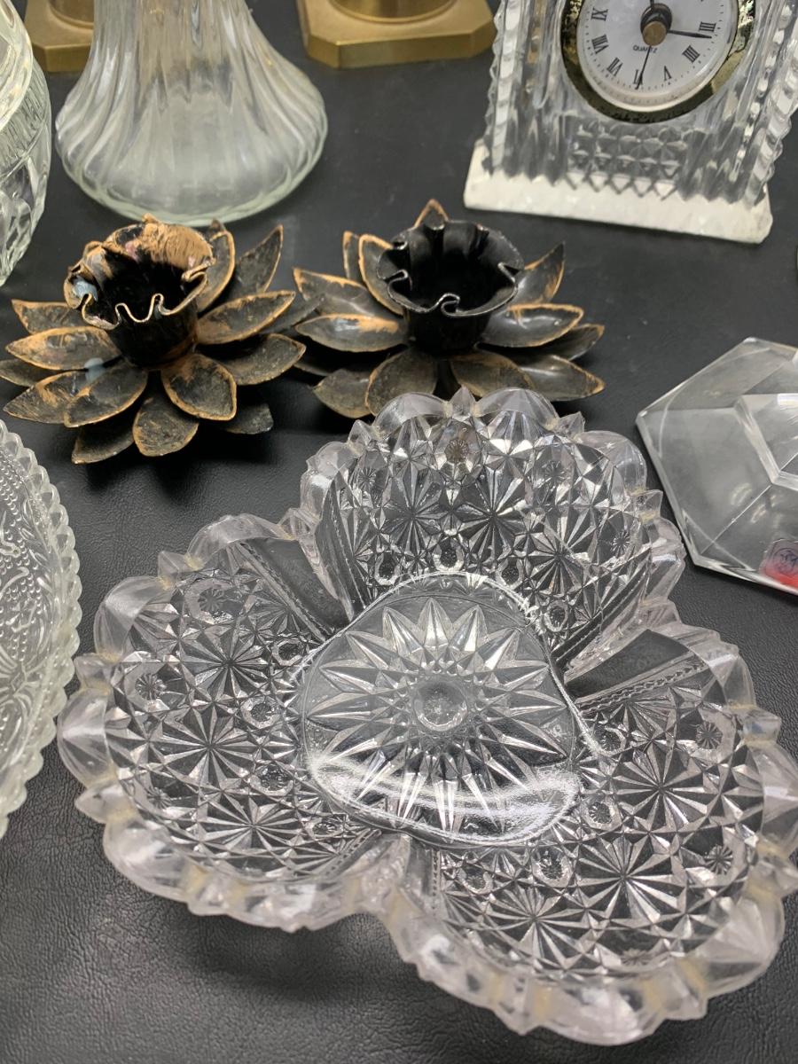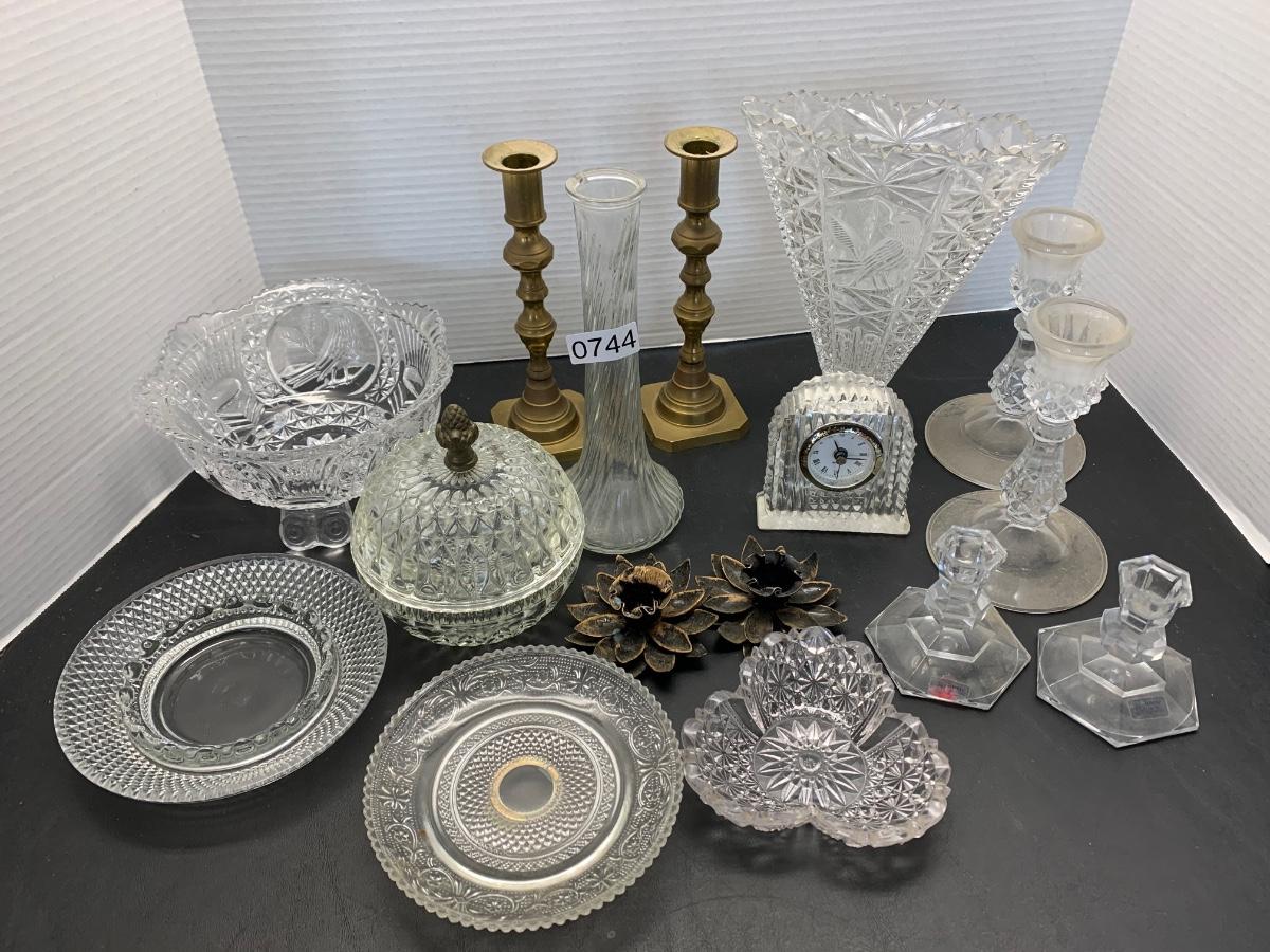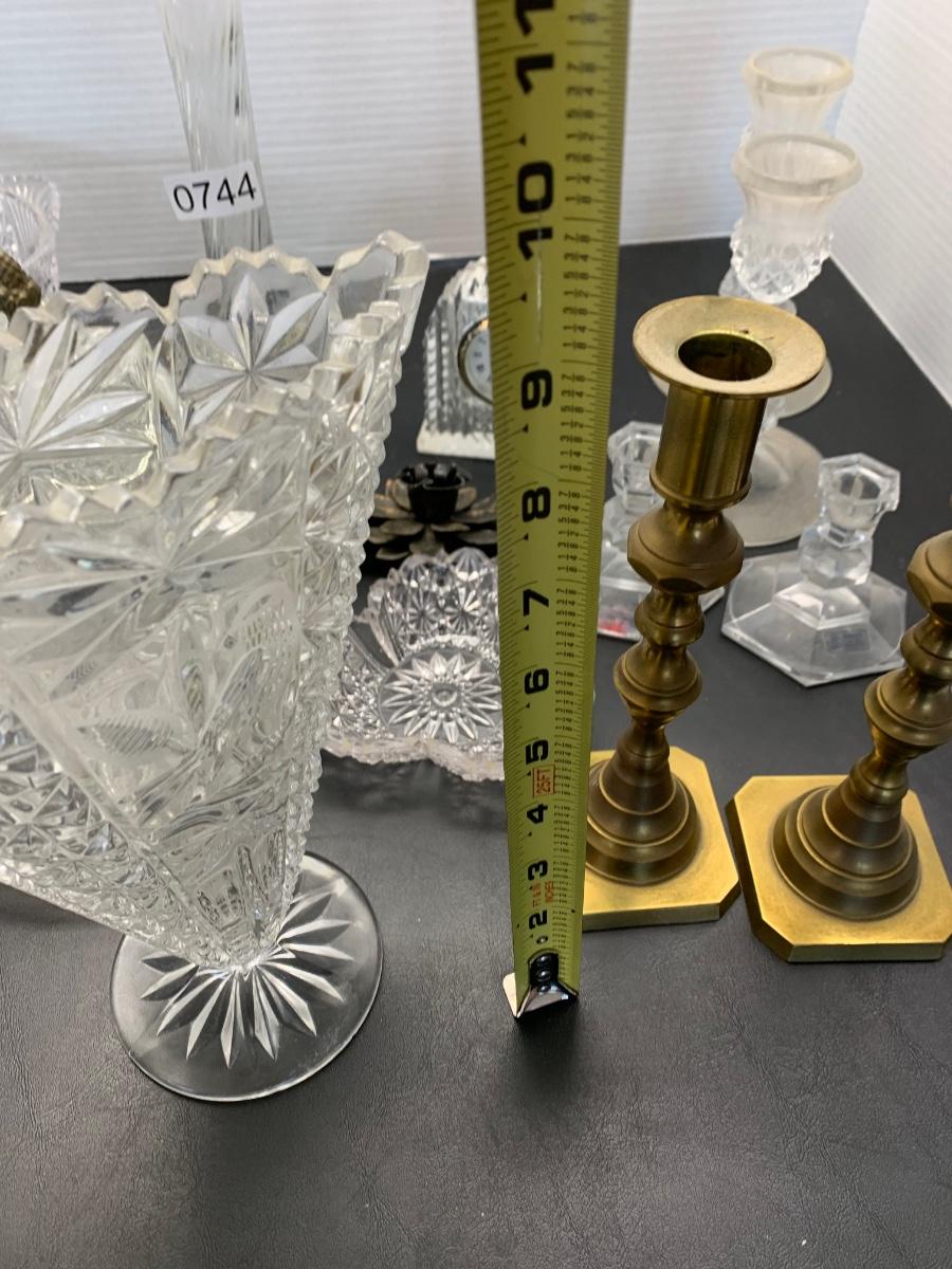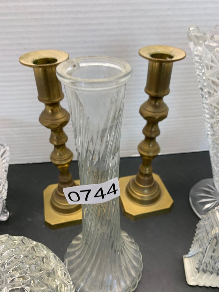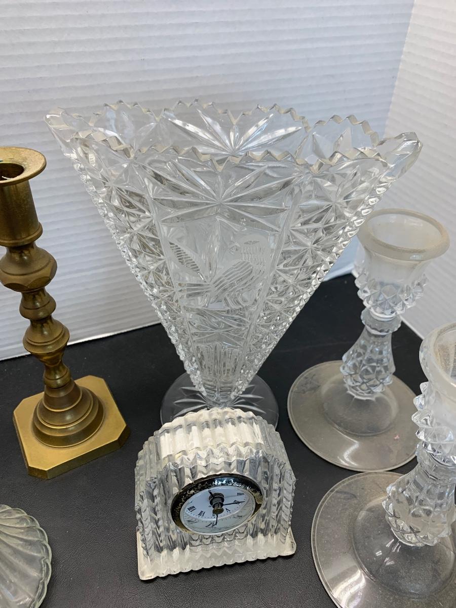 Vintage Glasswares Vase Brass Candlesticks Lot 744