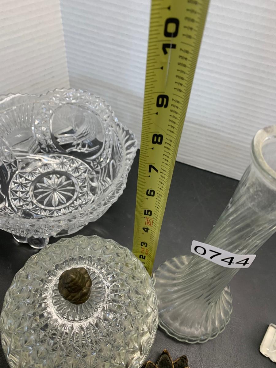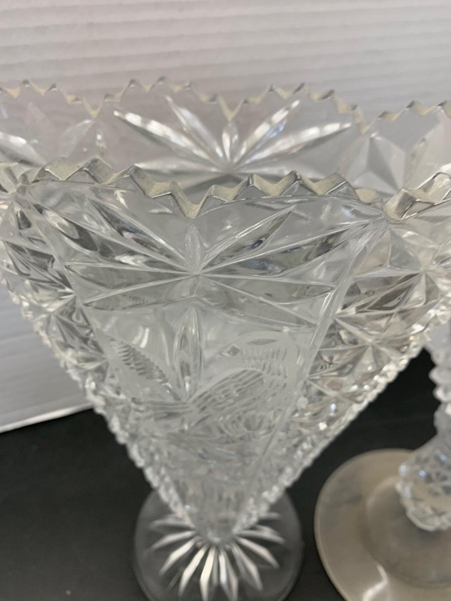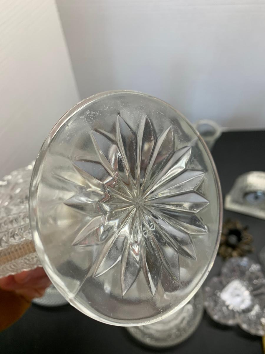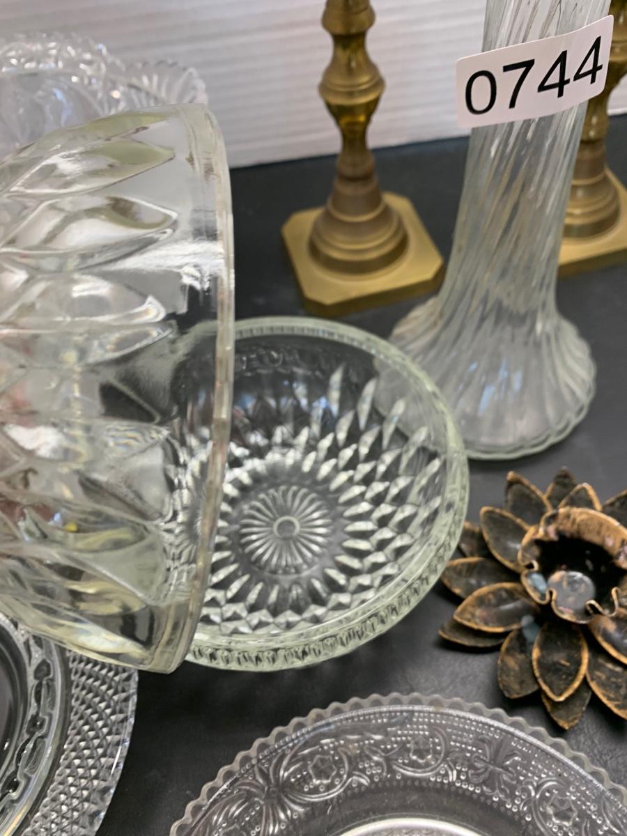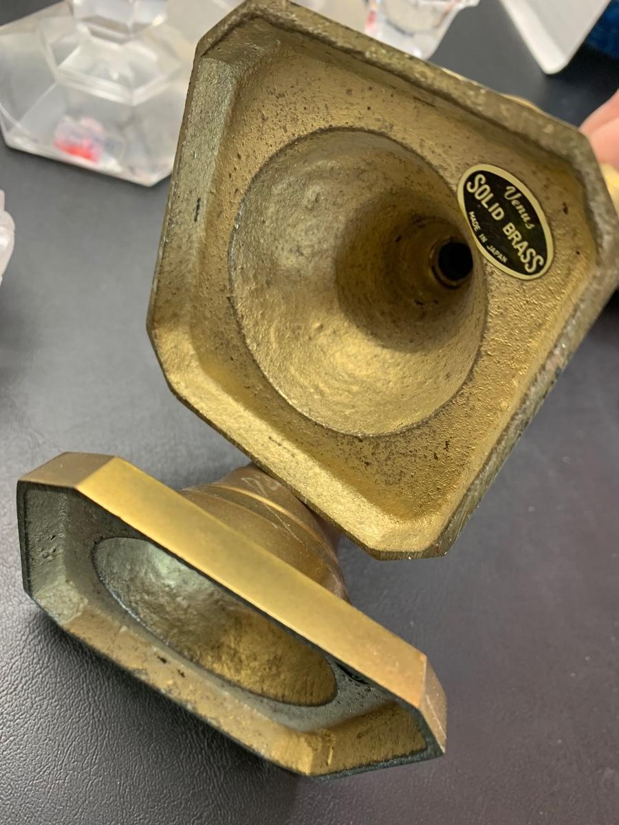 Vintage Glasswares Vase Brass Candlesticks Lot 744