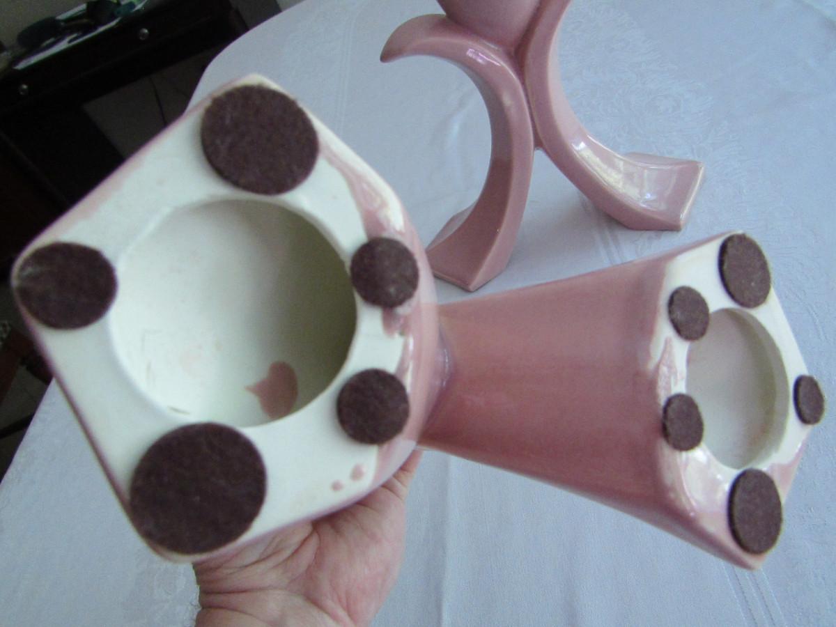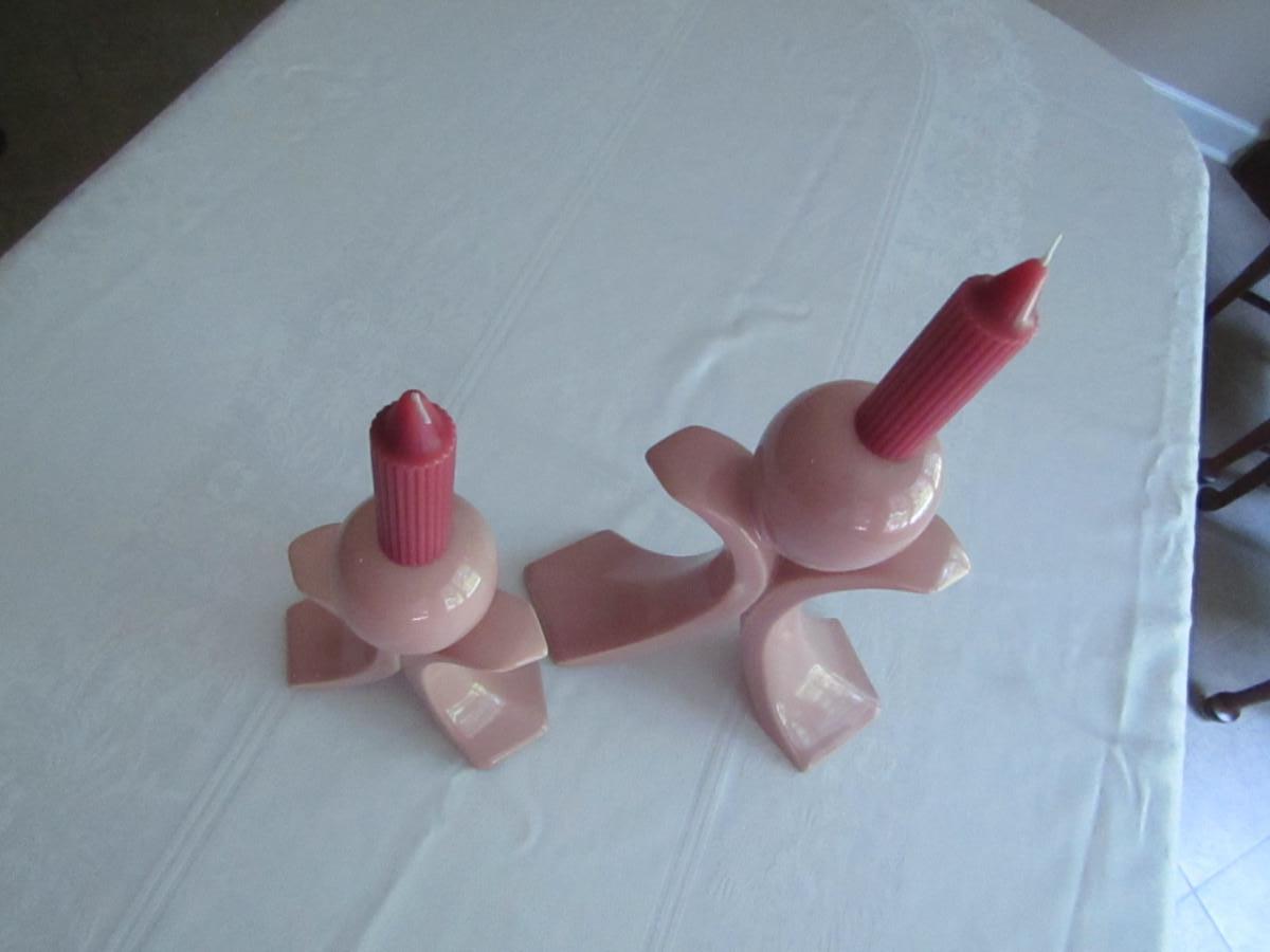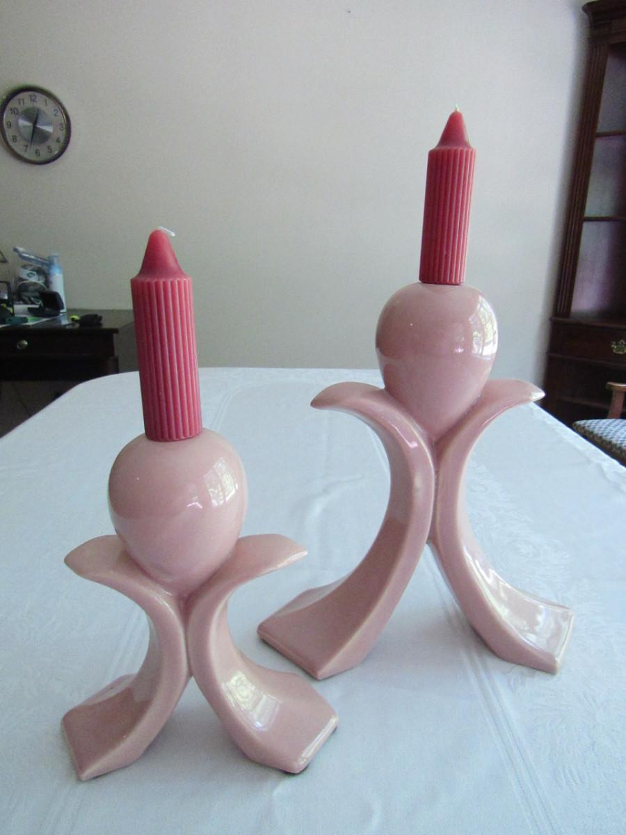 Large, Vintage Vanguard Accents Art Deco Style Glazed Ceramic Candle Holders
