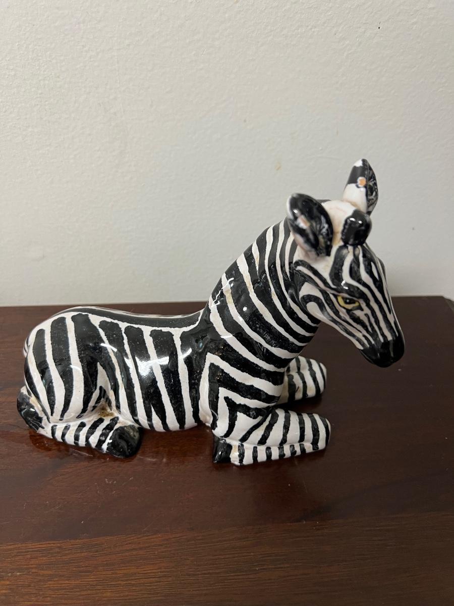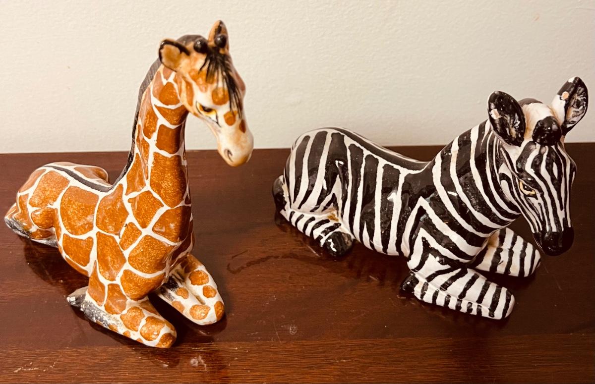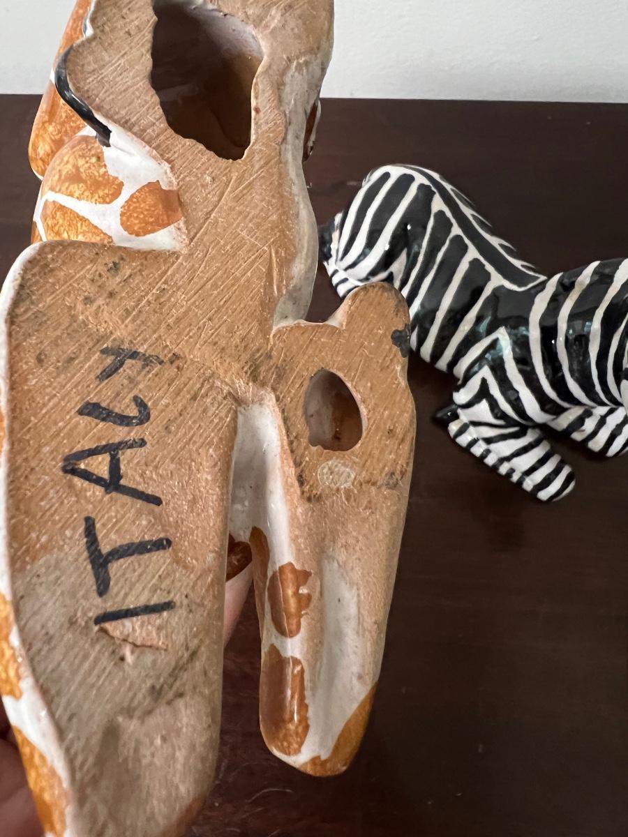 vintage glazed ceramic zebra, giraffe lot, Italy as pictured