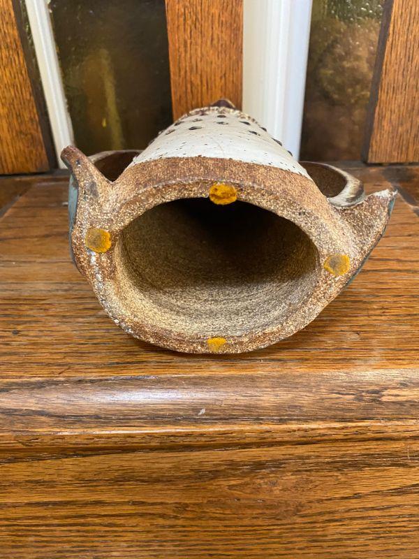 Vintage Glazed Stoneware Owl Figurine Signed