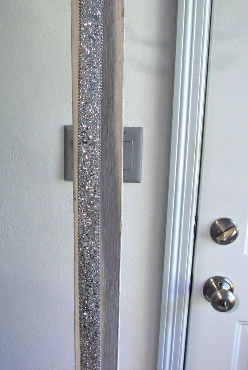 42" long end to end, no makers marks. Glitter on faux leather, silver metal fastener.