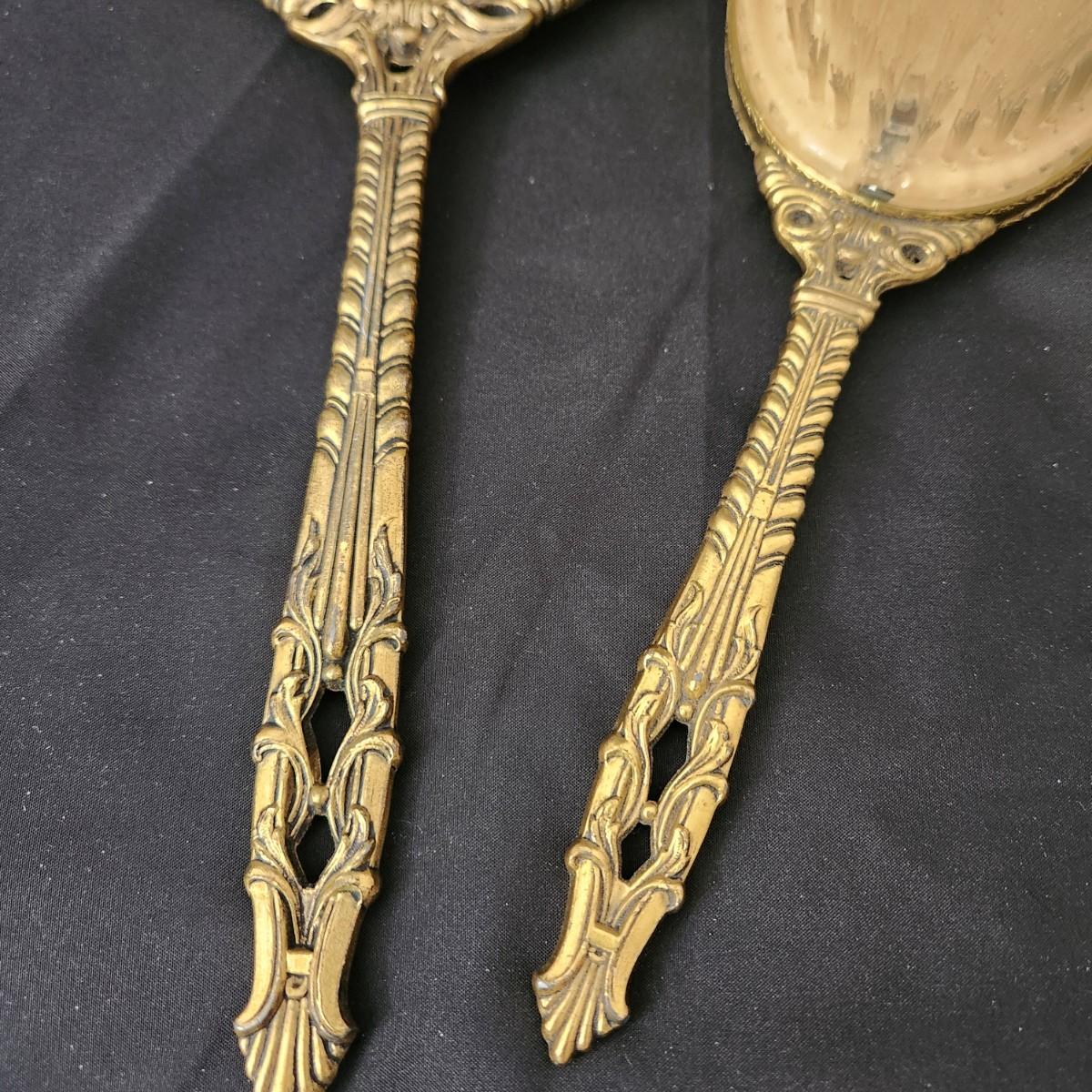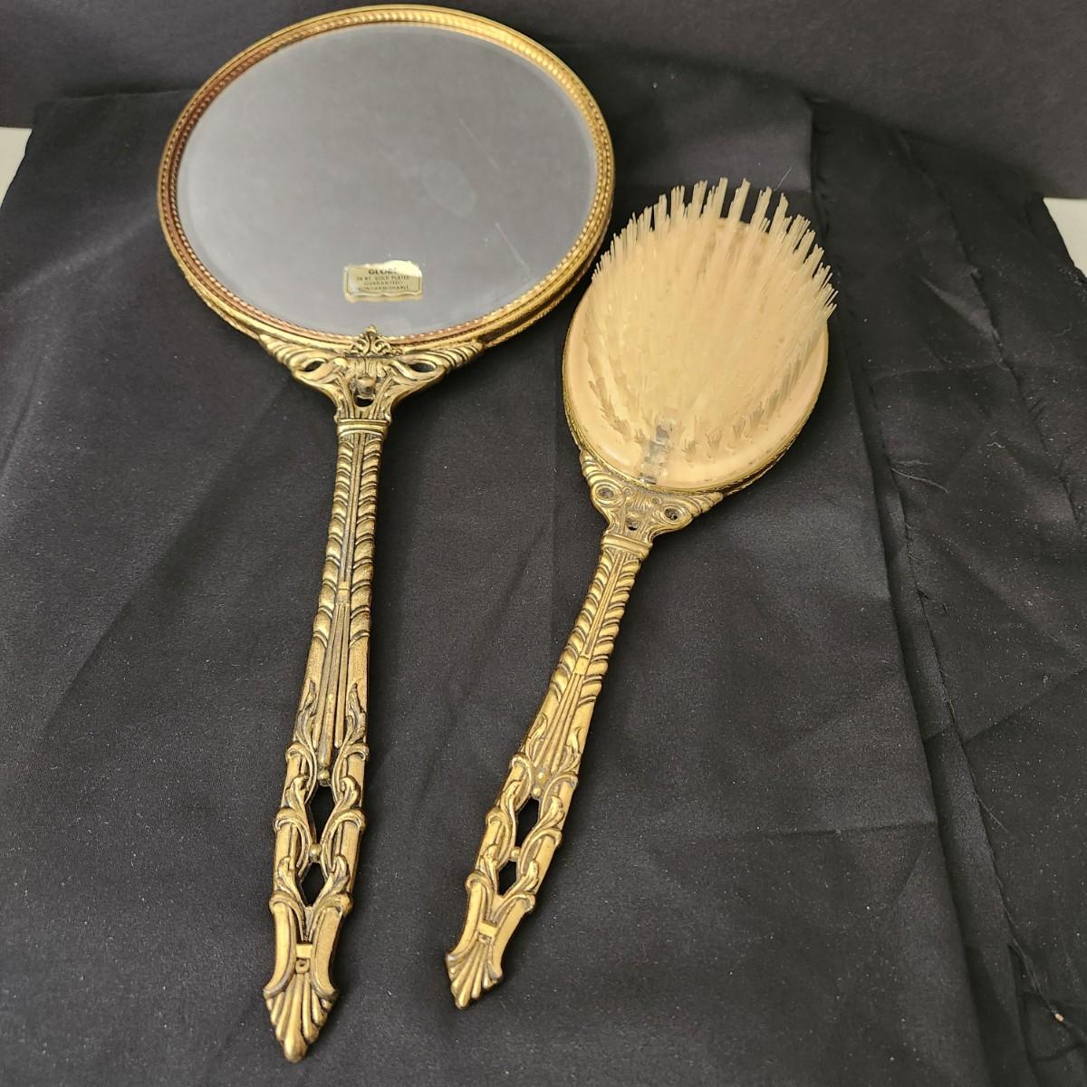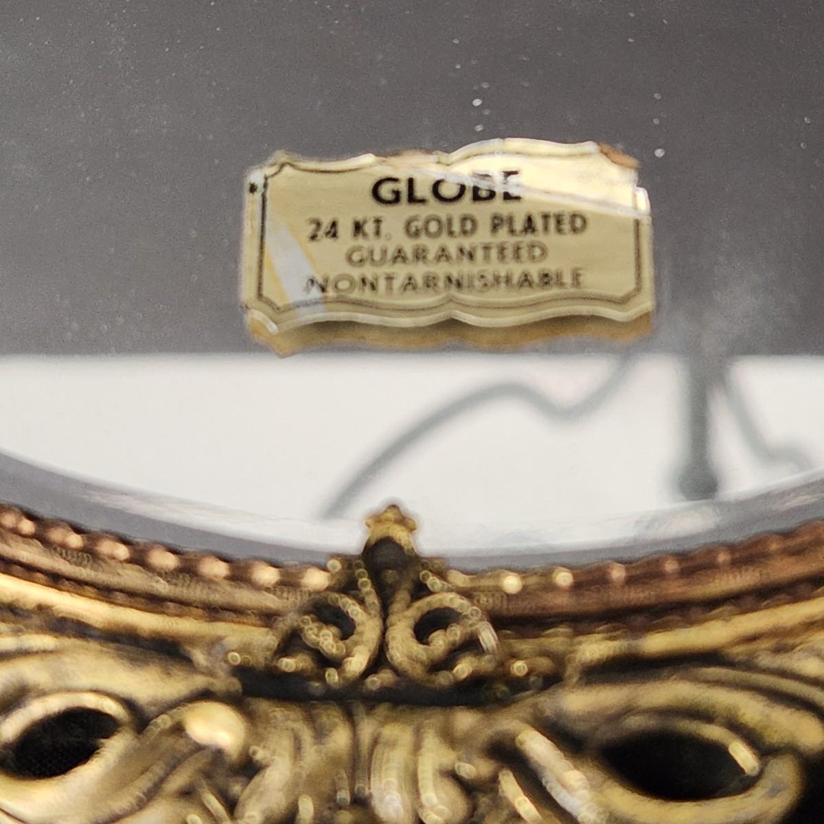Vintage Globe 24Kt Gold Plated Hand Mirror & Hair Brush