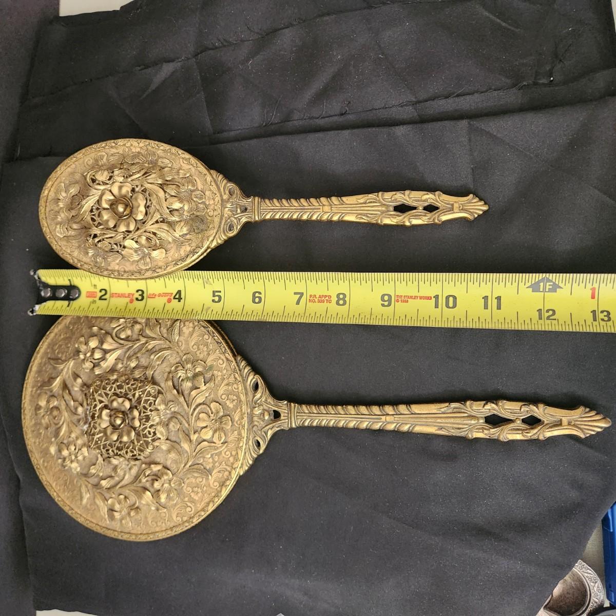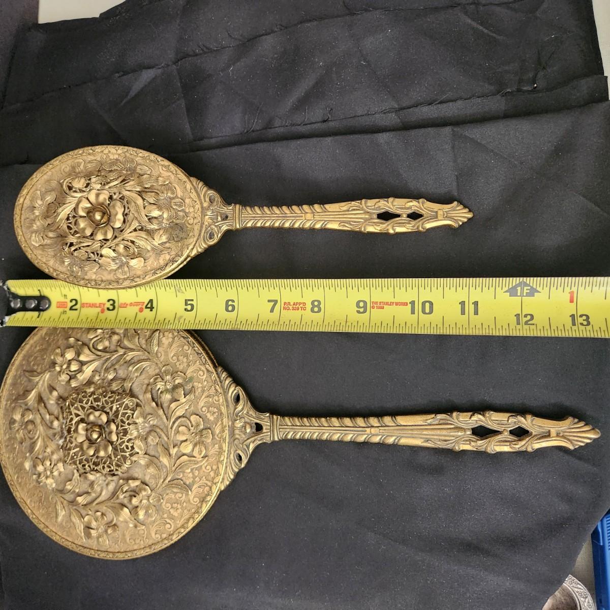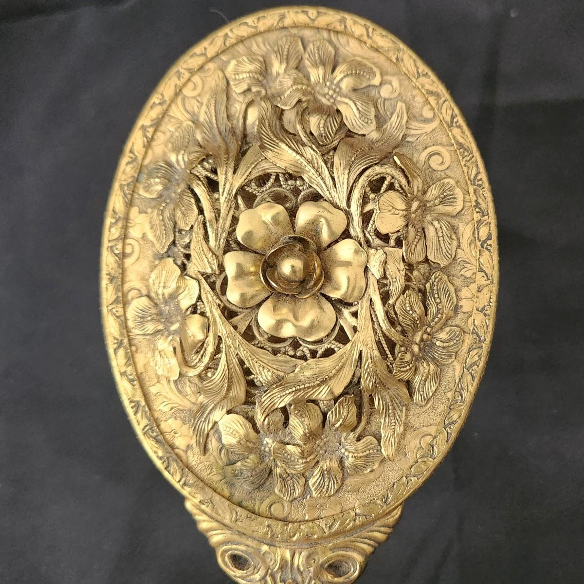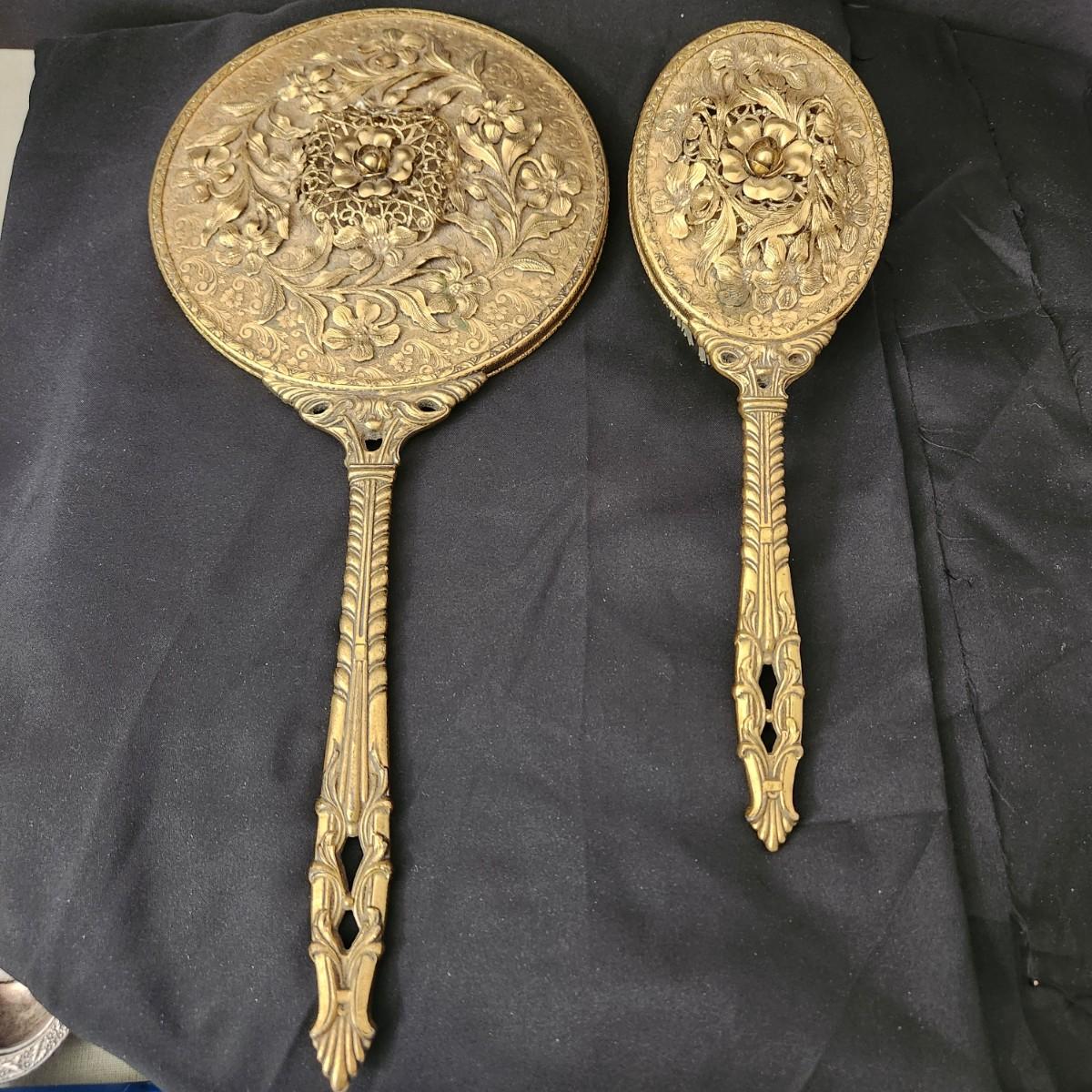 Vintage Globe 24Kt Gold Plated Hand Mirror & Hair Brush