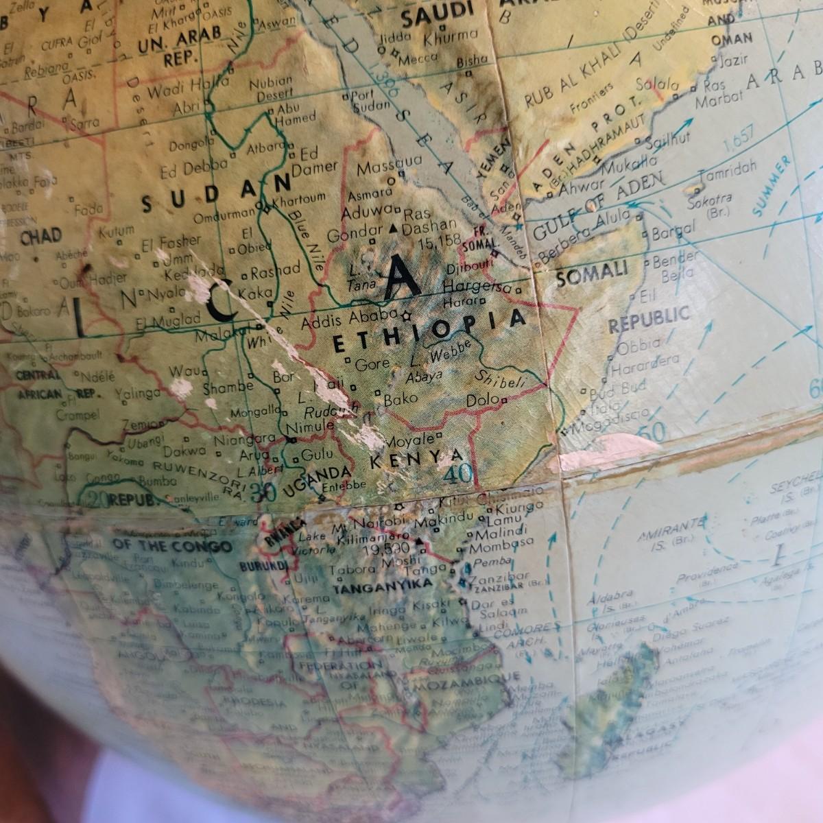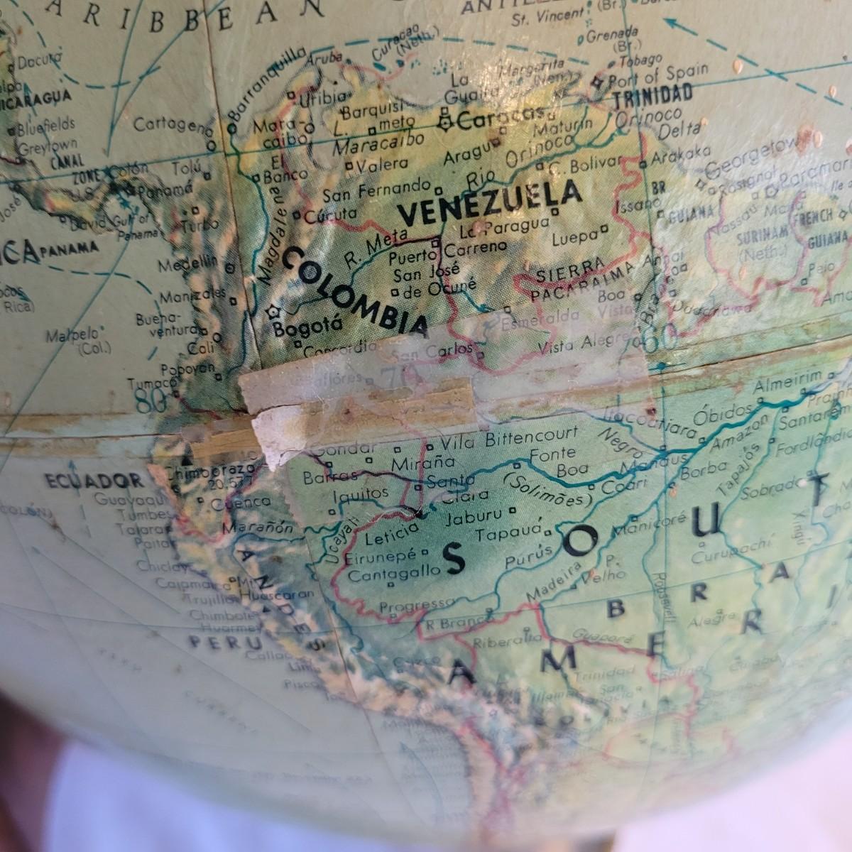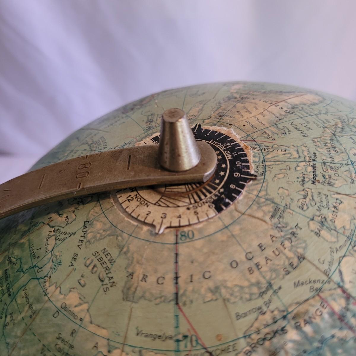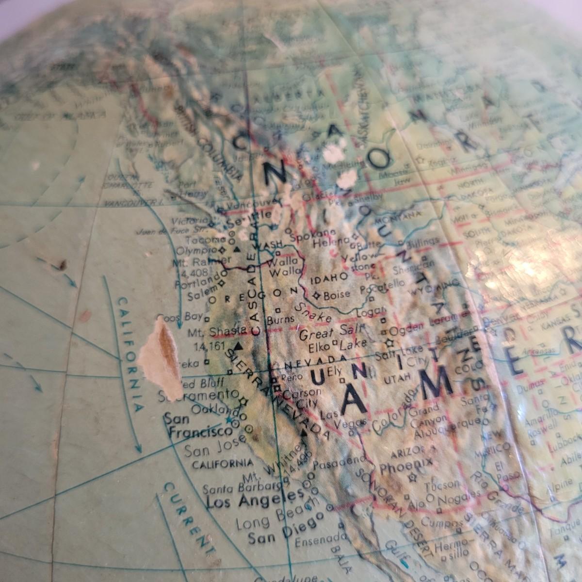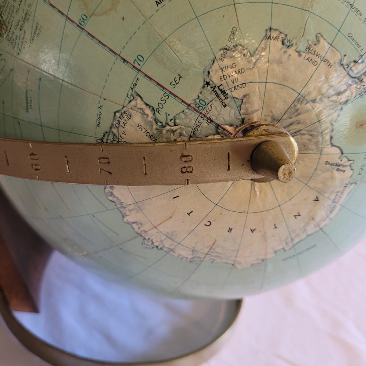 This auction is for a vintage Better Homes "True-To-Life" Globe. Made from paper, brass, and wood. Likely from the 1960 though names and labels of countries suggests it may be older. Globe spins freely on two different axis. Has some signs of wear and has a spot with some peeling tape near the equator seam. Globe measures 12" x 12" x 15"H.