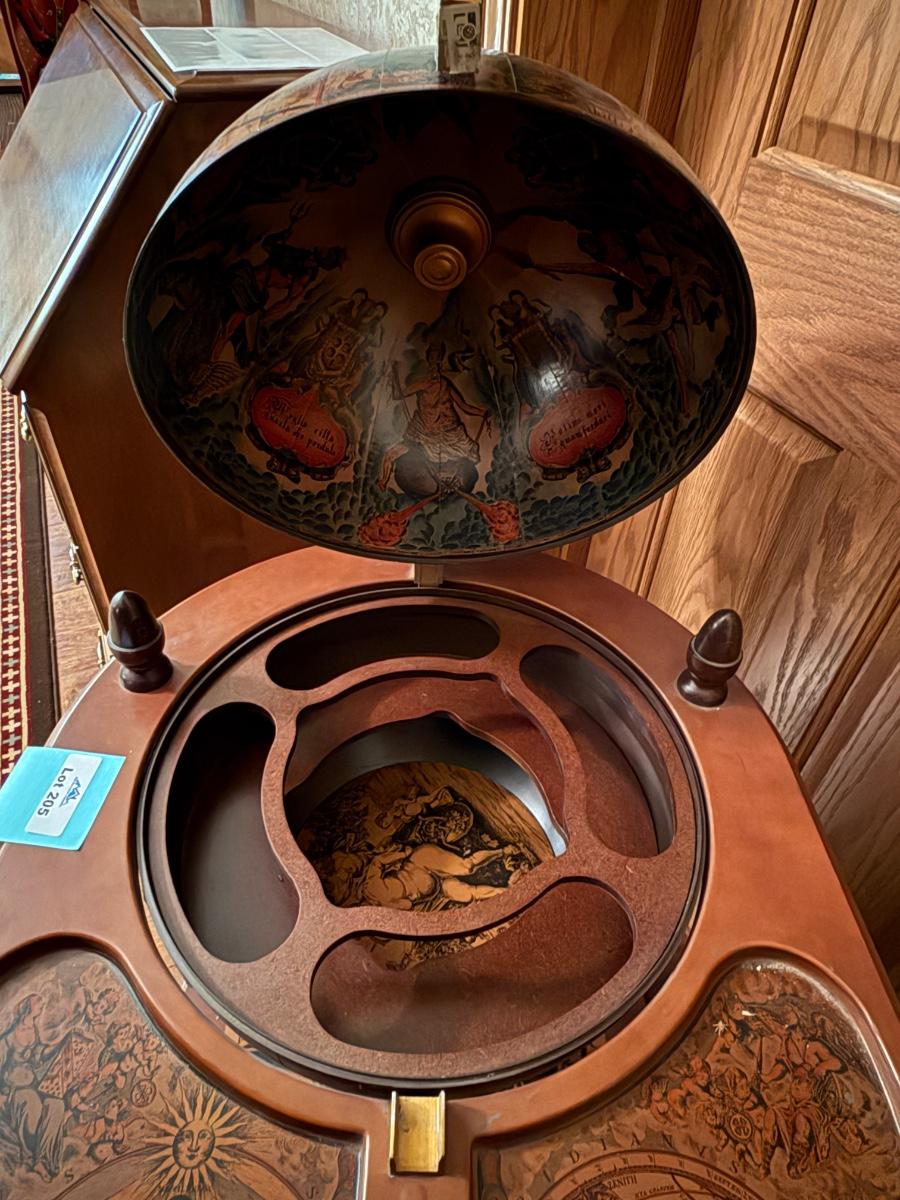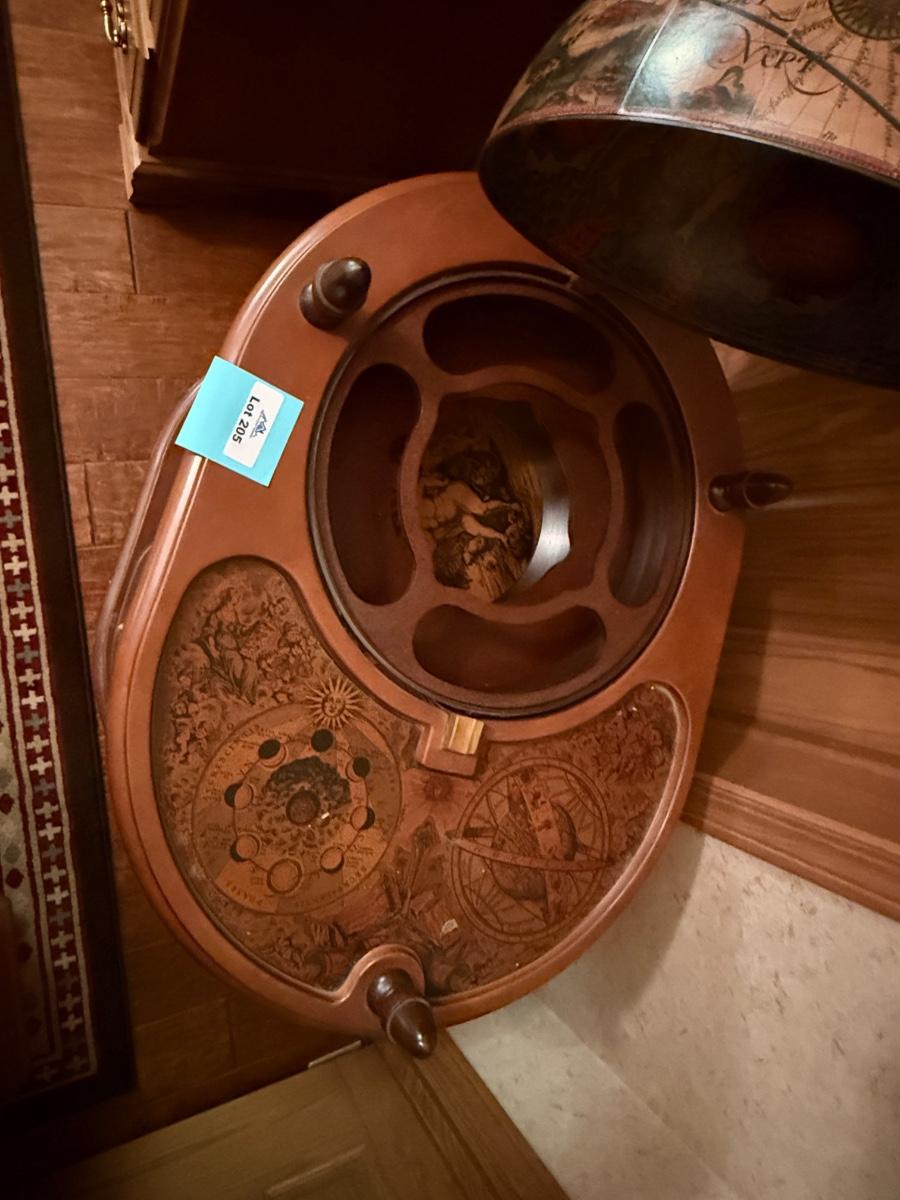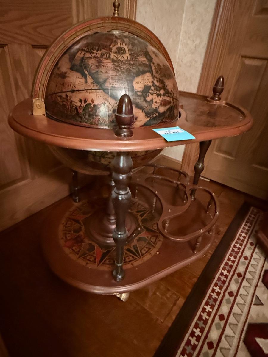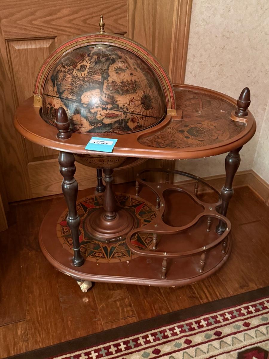 Vintage Globe themed lift top rolling Bar Cart