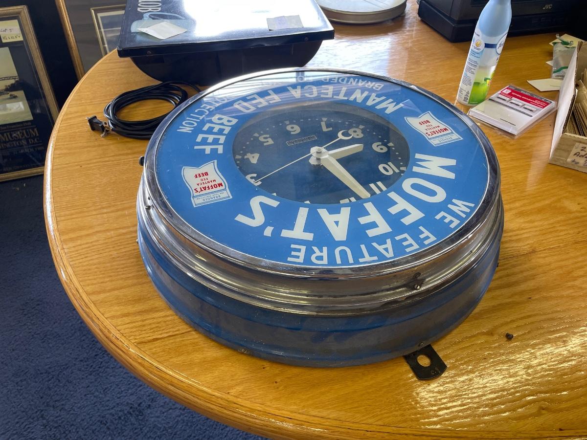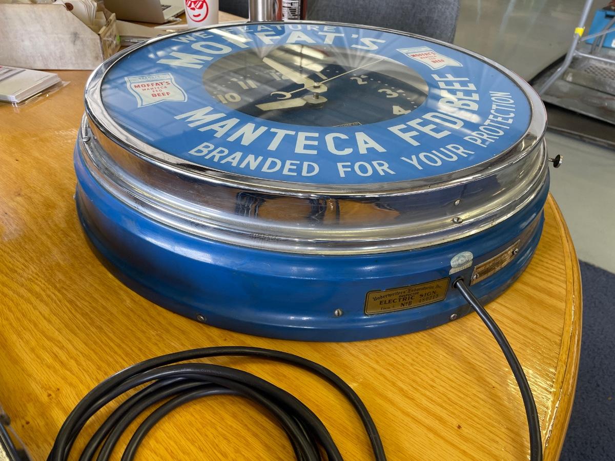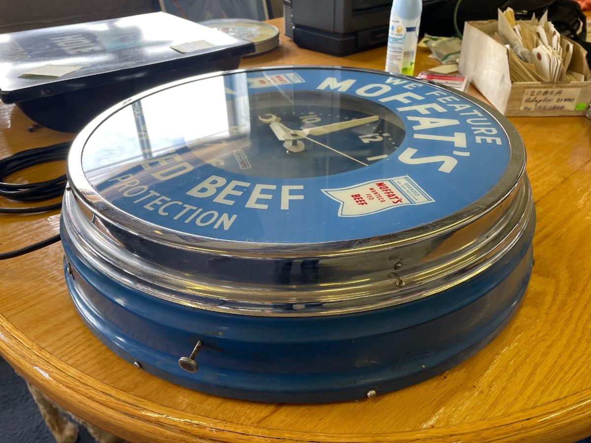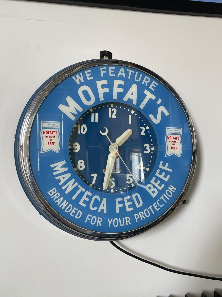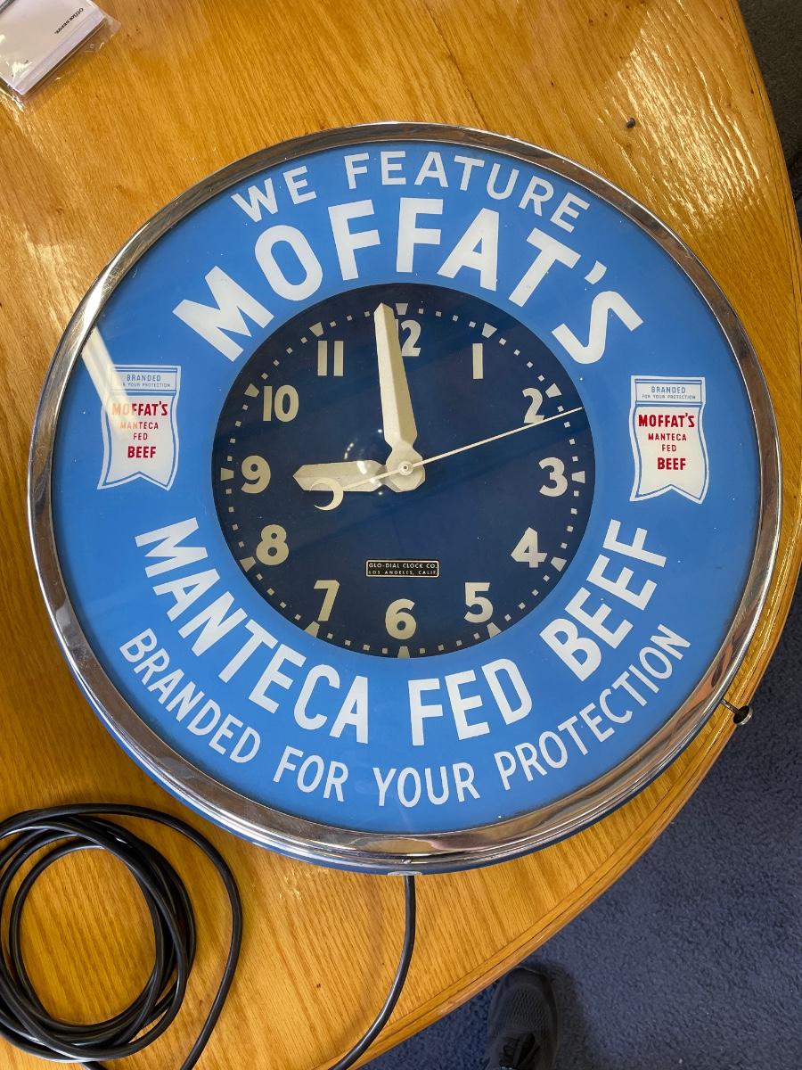 Vintage "Glo-Dial" Clock - Moffat's Manteca Fed Beef -  Working!