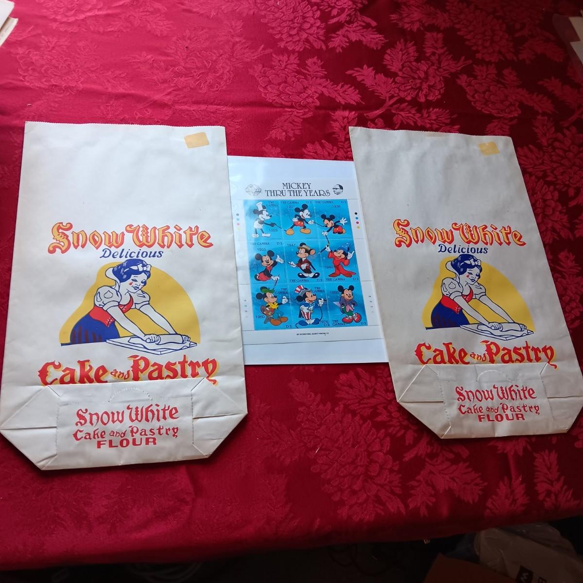 VINTAGE GLOW IN THE DARK SNOW WHITE CAK-PASTRY BAGS AND MICKEY MOUSE POSTAGE STAMPS