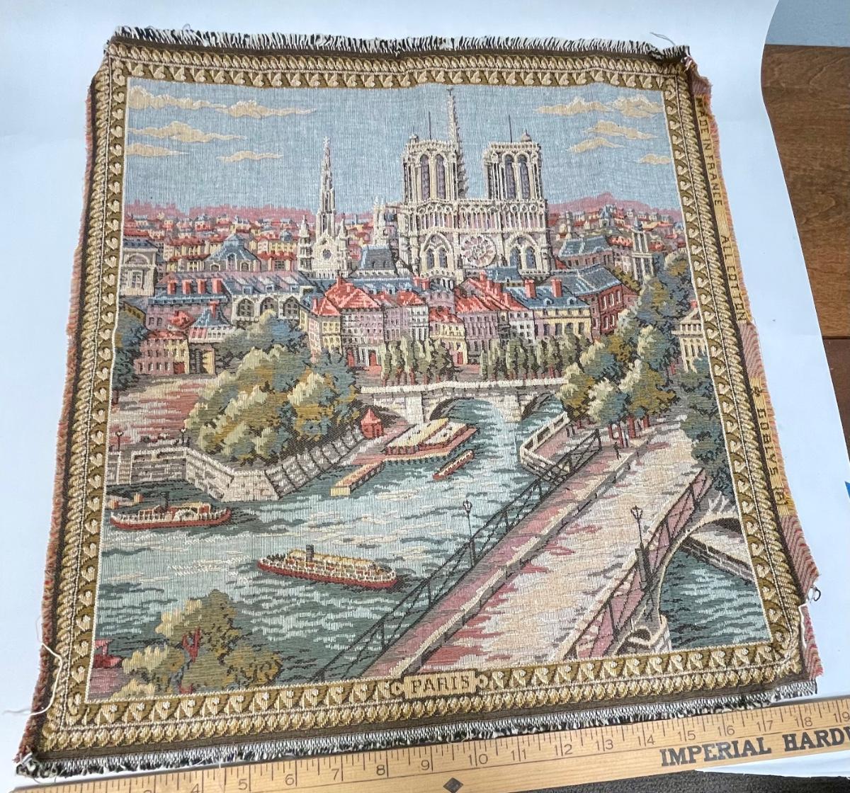 Vintage Goblys Paris Tapestry Norte Dame Cathedral 18" x 18"