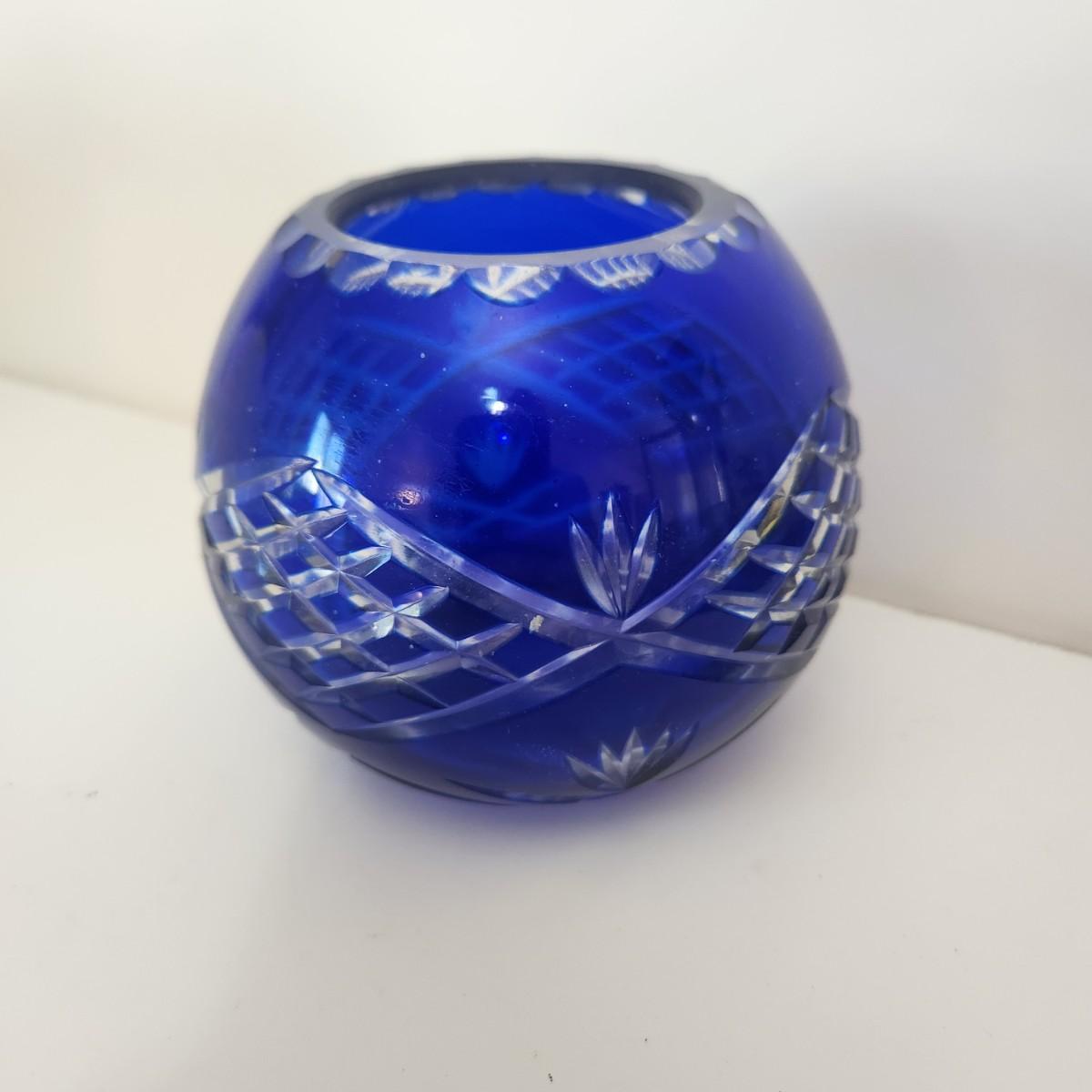 Vintage Godinger Legends Cut to Clear Cobalt Blue Crystal Vase