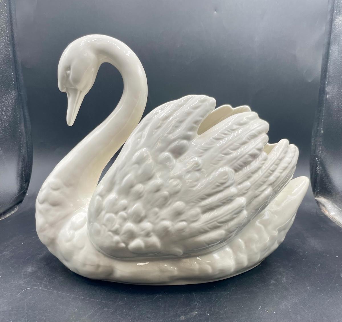 Excellent ceramic swan planter made in West Germany by Goebel. No chips or cracks. Approx 10” high , 12” long.