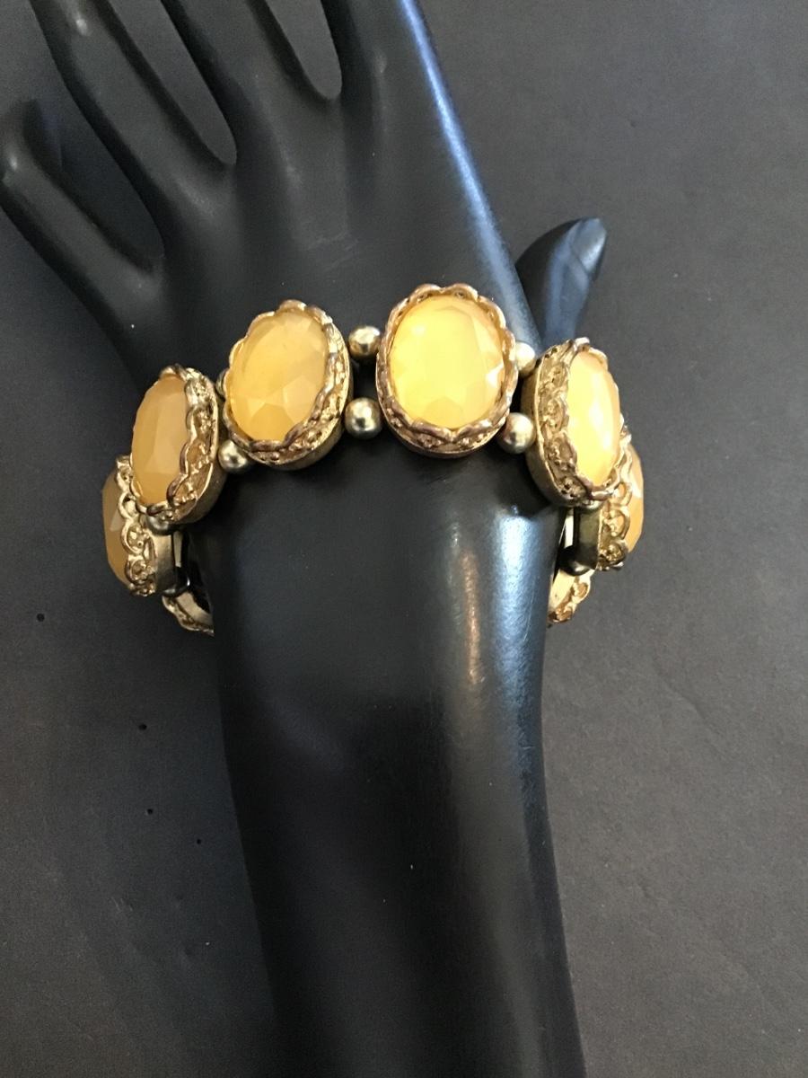 Vintage gold and yellow tone, fashion, statement bracelet. Please see attached photos.