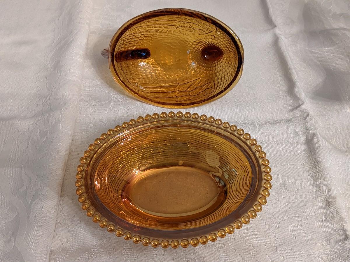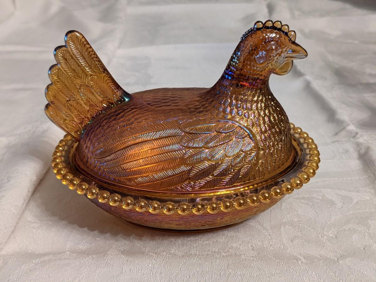 Vintage Gold Carnival Glass Iridescent Hen on a Nest