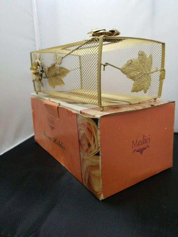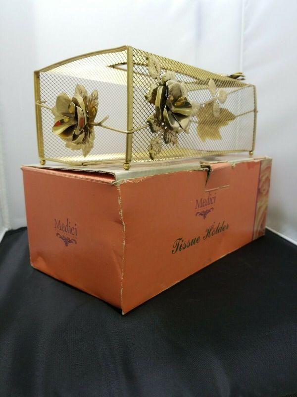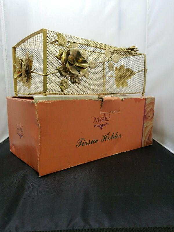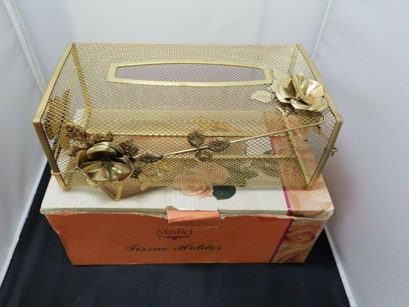 Brass Tissue Holder by Medici Original Box Roses Floral