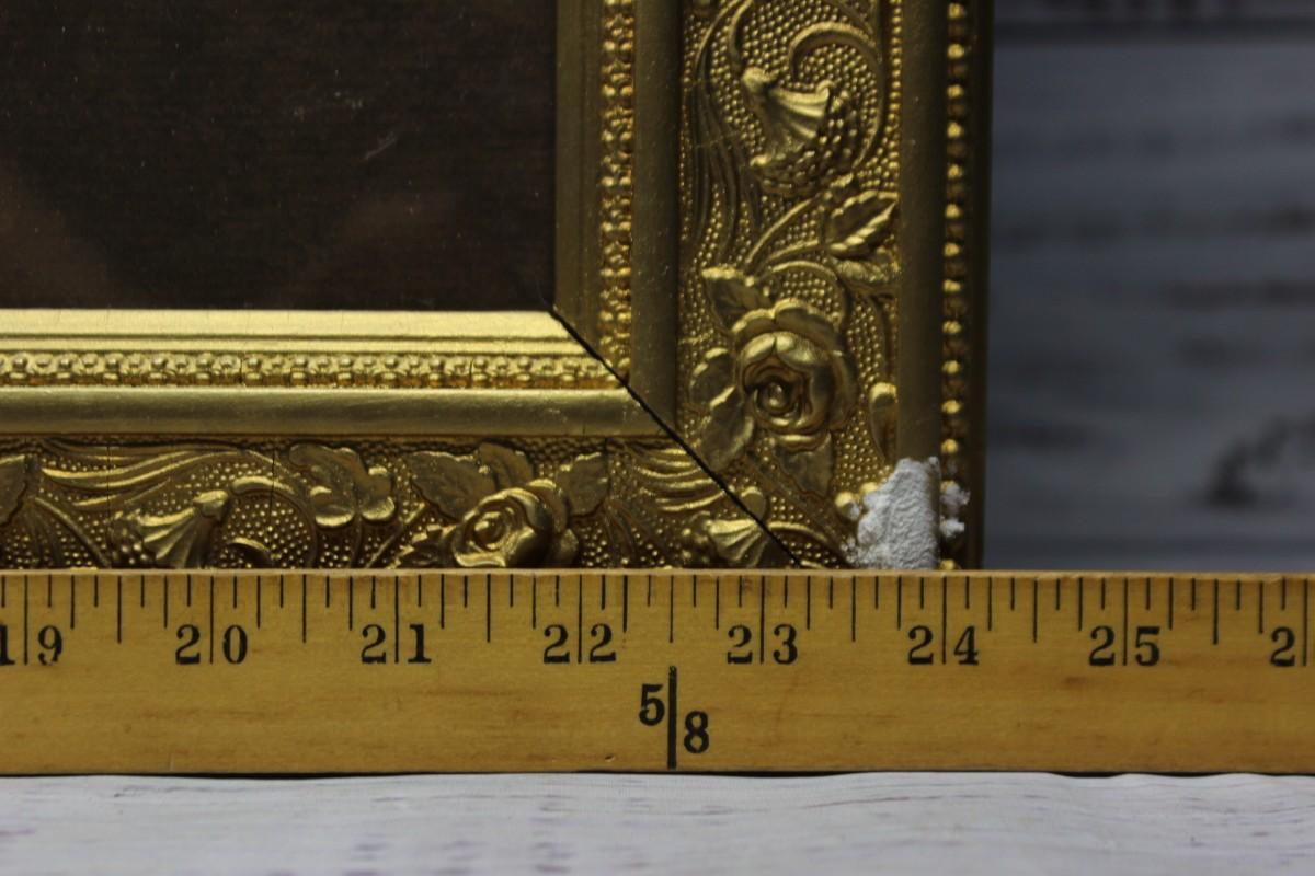 Vintage Gold Framed Print Portrait of a Child in Blue Dress, there are no significant cracks or chips to the frame or protective glass and is in good condition. Check pictures for more details and for sizing.